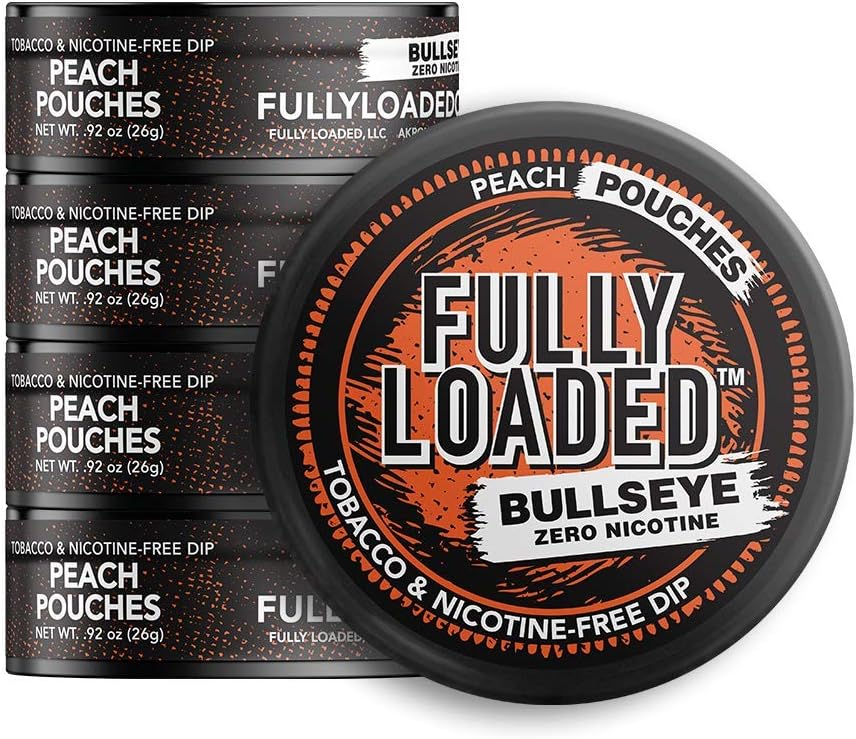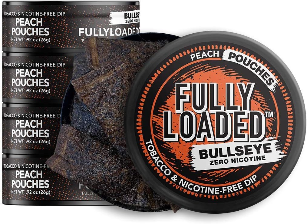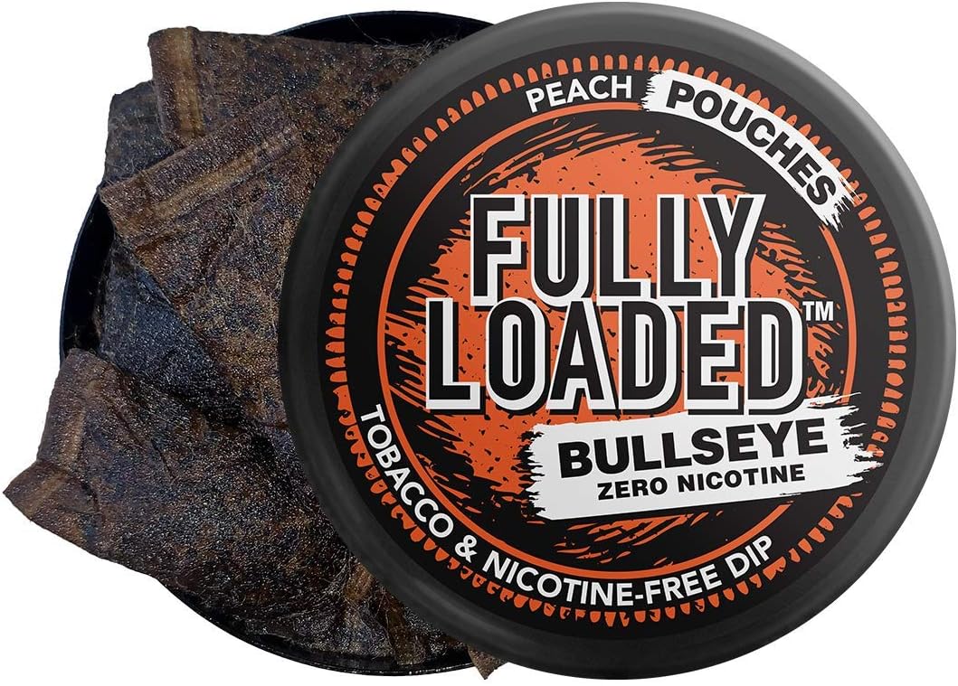 Fully Loaded Chew Peach Bullseye POUCHES provides a peachy sweet chew experience with 0% tobacco. The Bullseye line of products is completely nicotine free. Our pouches provide the same mouth feel, spit, and pop of flavor that you desire without tobacco. The peach flavor is sweet, refreshing, and balanced for optimum enjoyment.