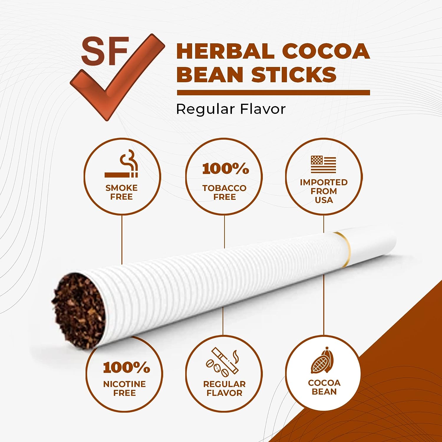 • ⦁ MANAGE NICOTINE CRAVINGS: Smoke Free, Nicotine-Free Cigarettes help manage your urges and improve your overall well-being. Our Herbal Cocoa Bean Cigarettes are a great alternative to traditional cigarettes, and can help you transition to a tobacco-free lifestyle.