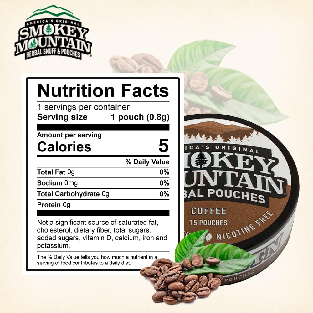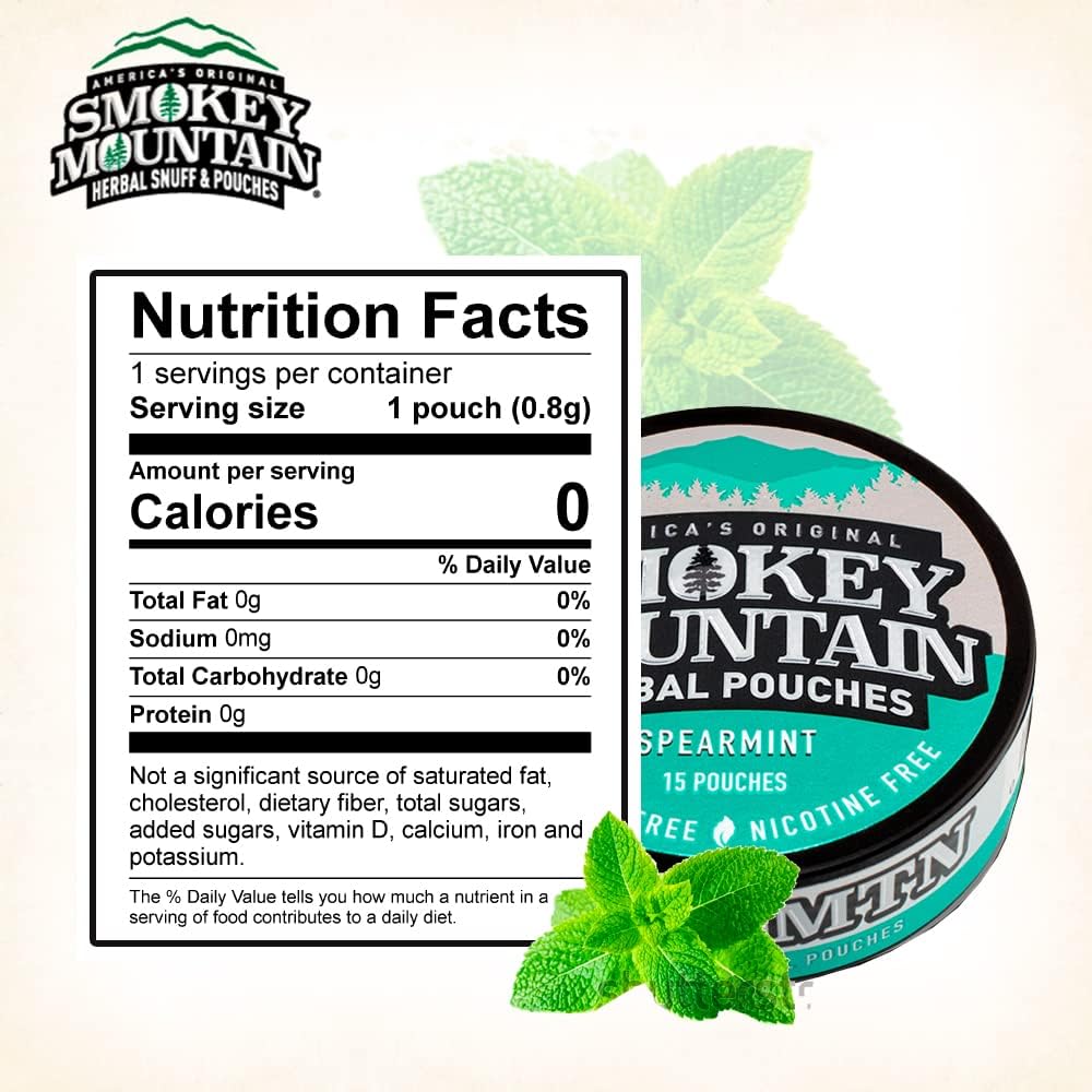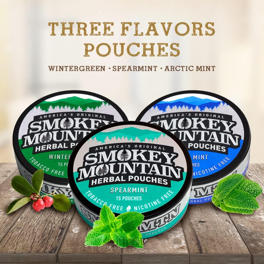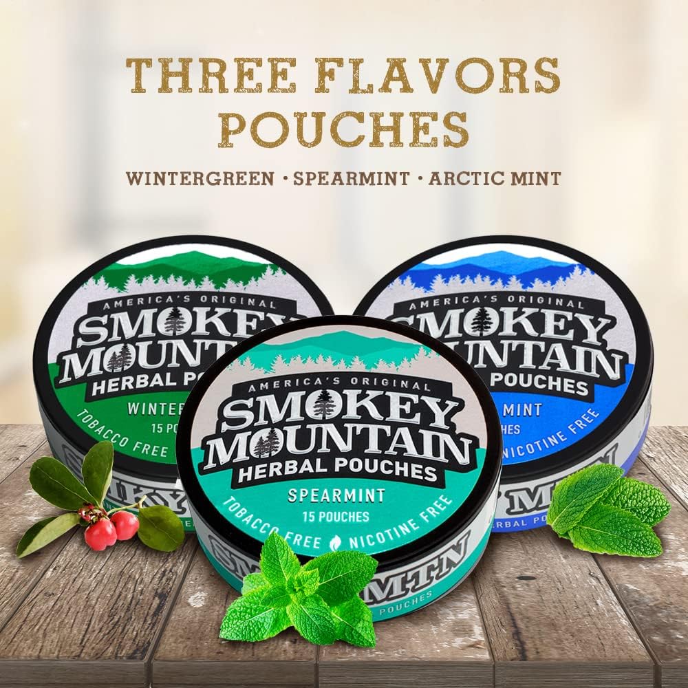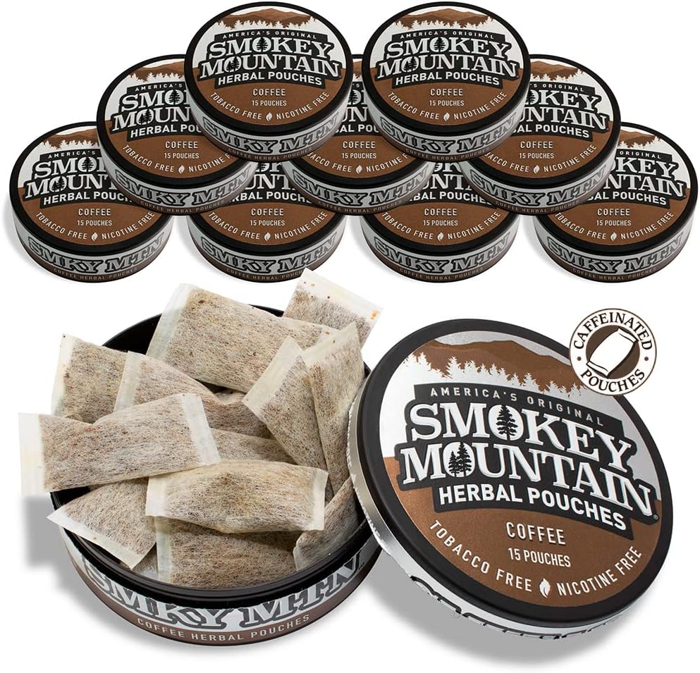 Smokey Mountain Caffeinated Pouches - Wintergreen - Tobacco Free and Nicotine Free - 10 Can Box - 15 Pouches Per Can