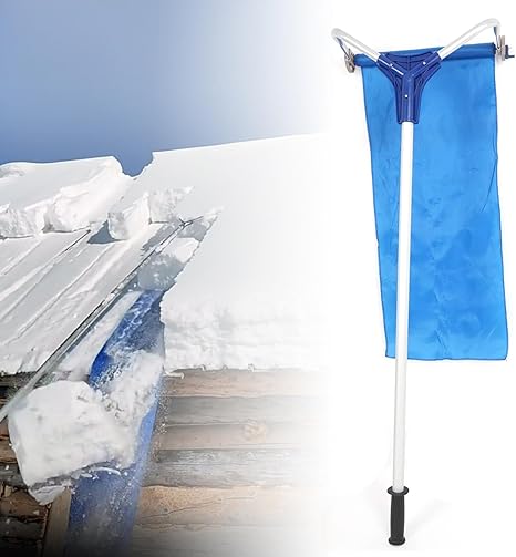 Easy and Quick Snow Removal from Roof, Adjustable Aluminum Roof Snow Removal Tool with Wheels & Oxford Cloth, Anti-Slip Roof Rake Snow Removal Tool with 5-Section Tubes