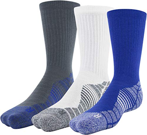 Under Armour Adult Elevated Performance Crew Socks, 3-Pairs , Royal Assorted 1 , Large
