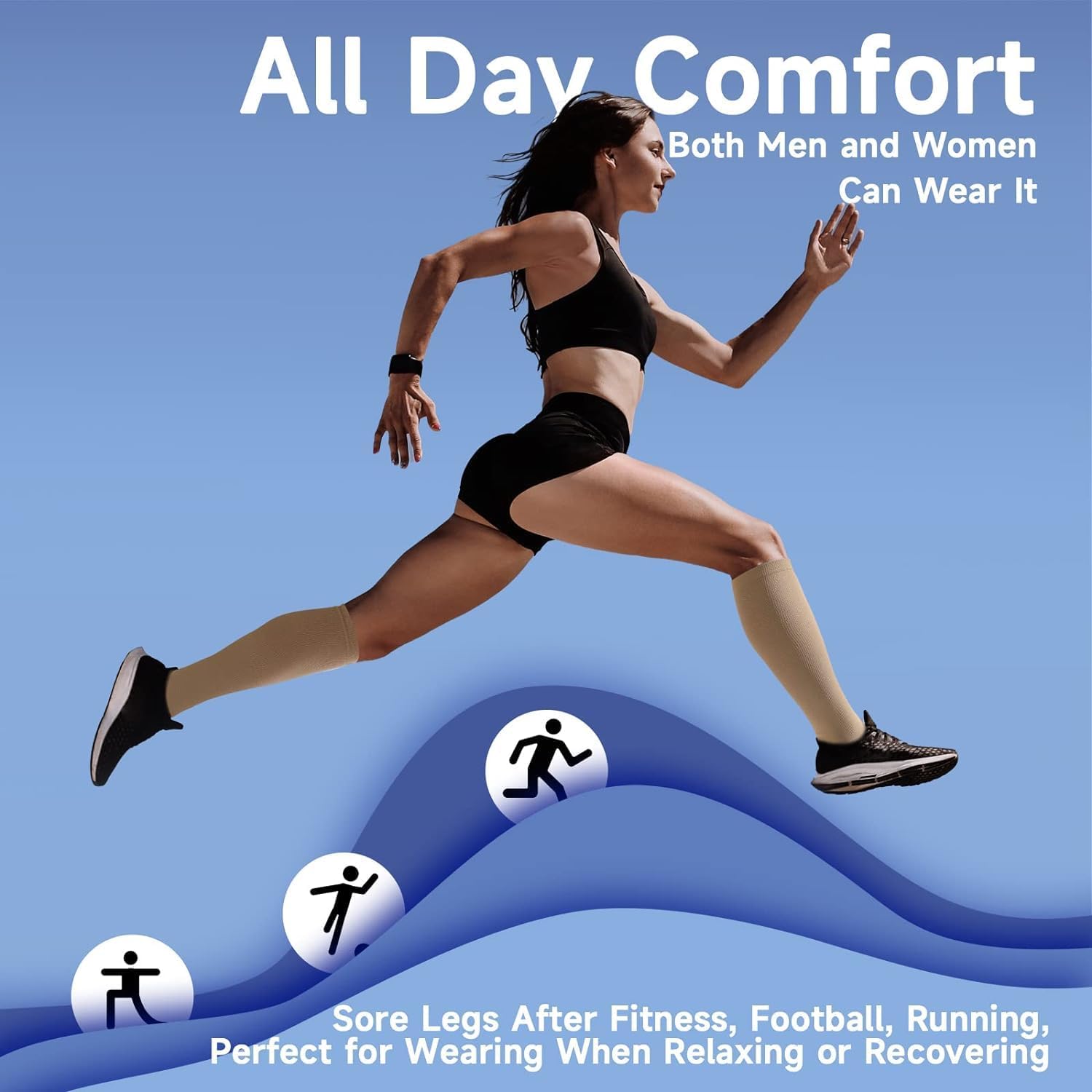 • ✅ WHY DO WANT TO TORTURE LEGS- Our graded compression technology (15-20mmHg) can provide the ideal compression effect, Appropriately increase the pressure of the legs, thereby maximizing blood circulation. Our compression stockings can provide better oxygen circulation, Help reduce the accumulation of fluid, and help the calf, ankle, and muscles recover faster. Why should you let yourself suffer any more? Let our compression stockings help you torecovery very and no more pain.