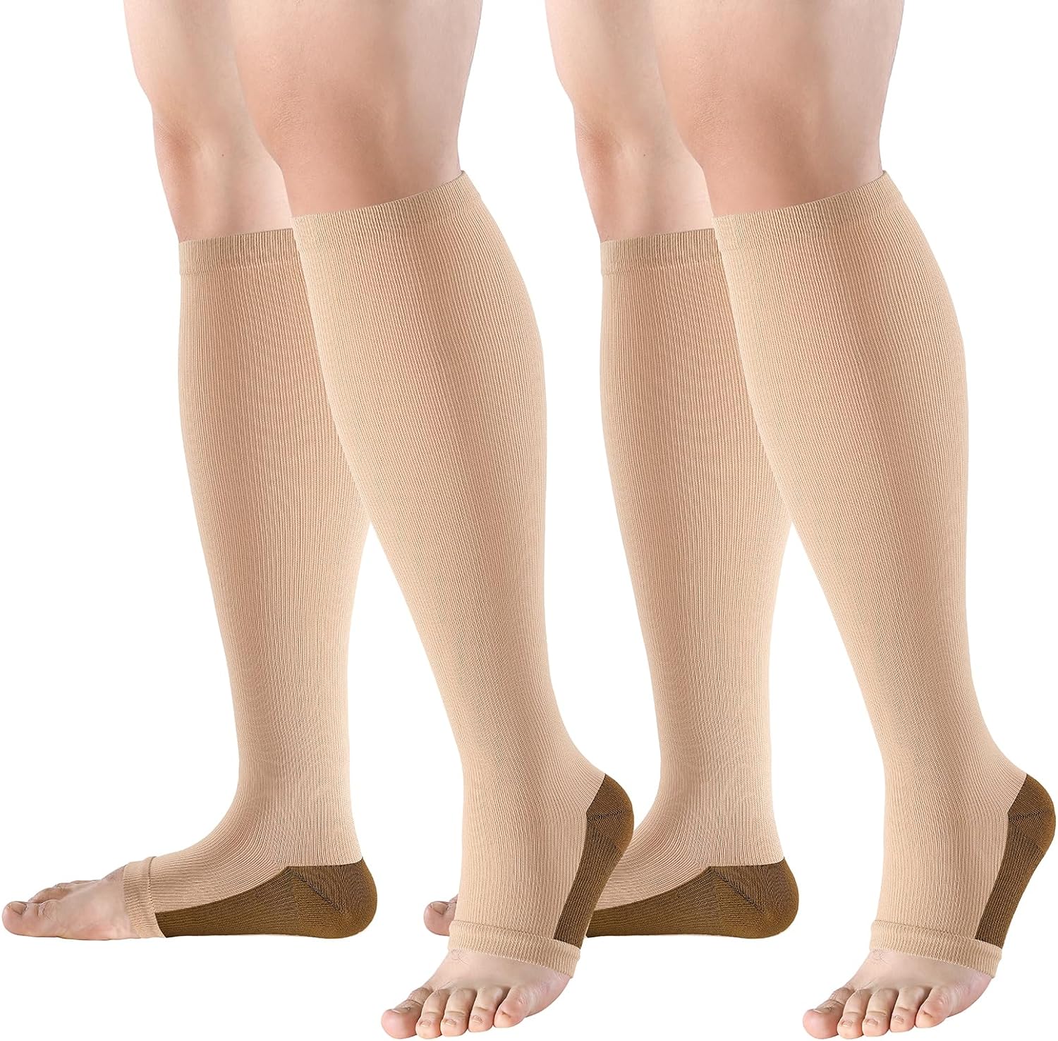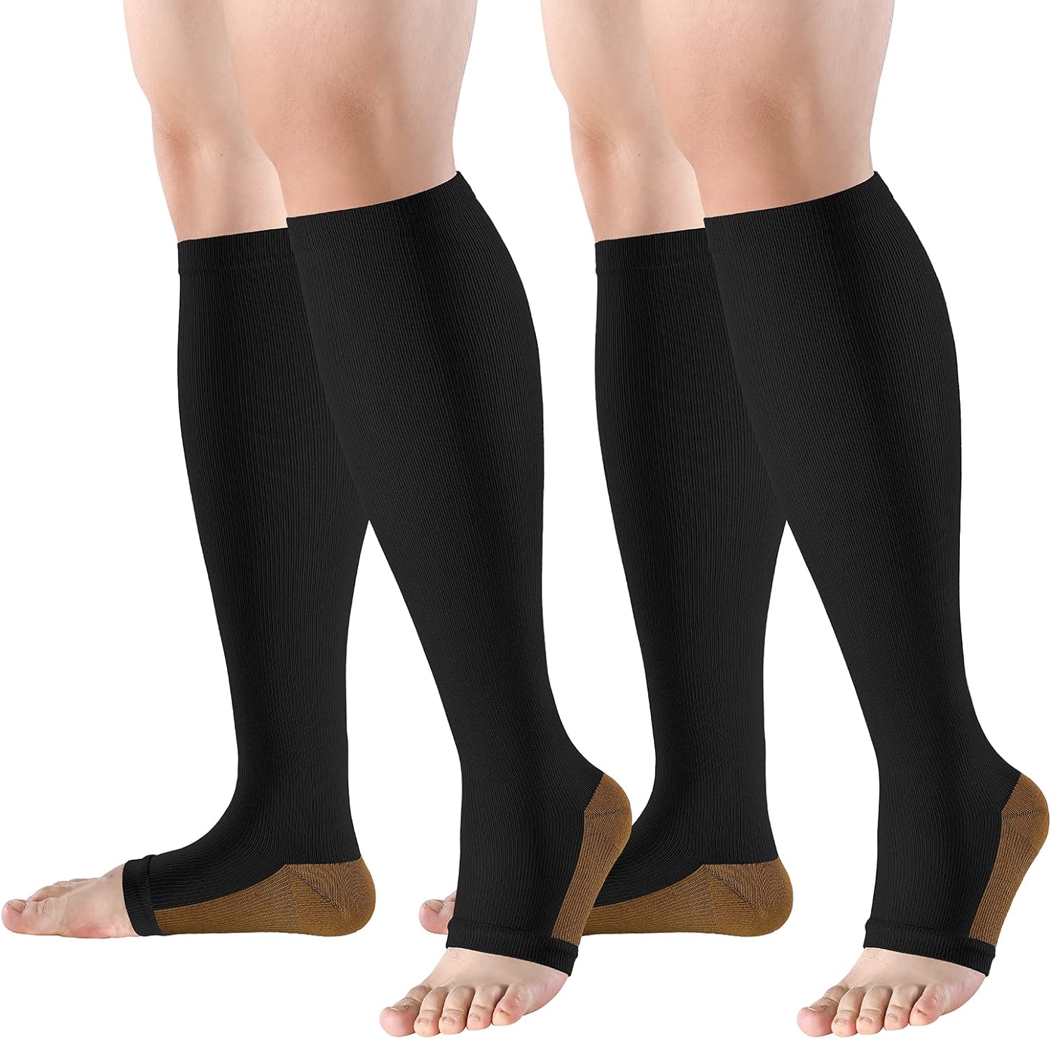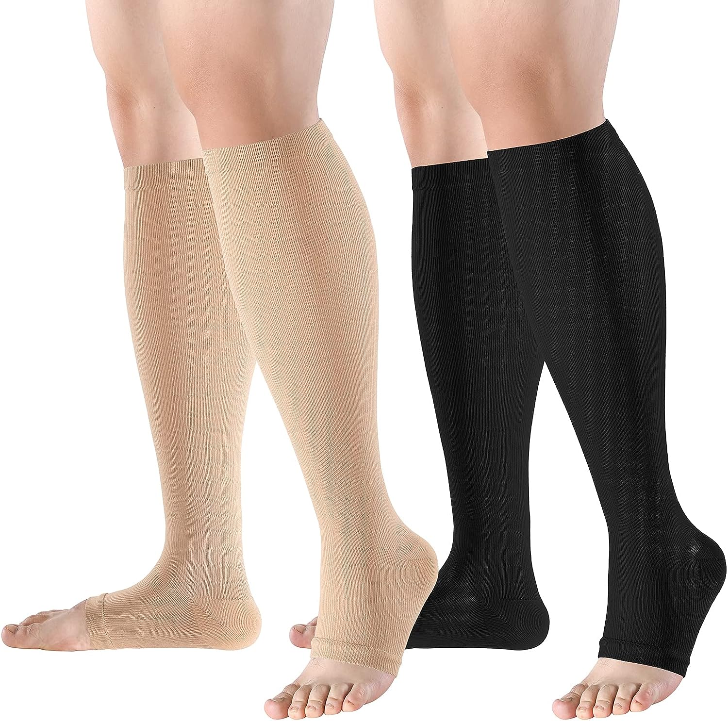 bropite Open Toe Compression Socks for Men & Women - 2 Pairs of 15-20 mmhg Knee High Stockings for Circulation Support