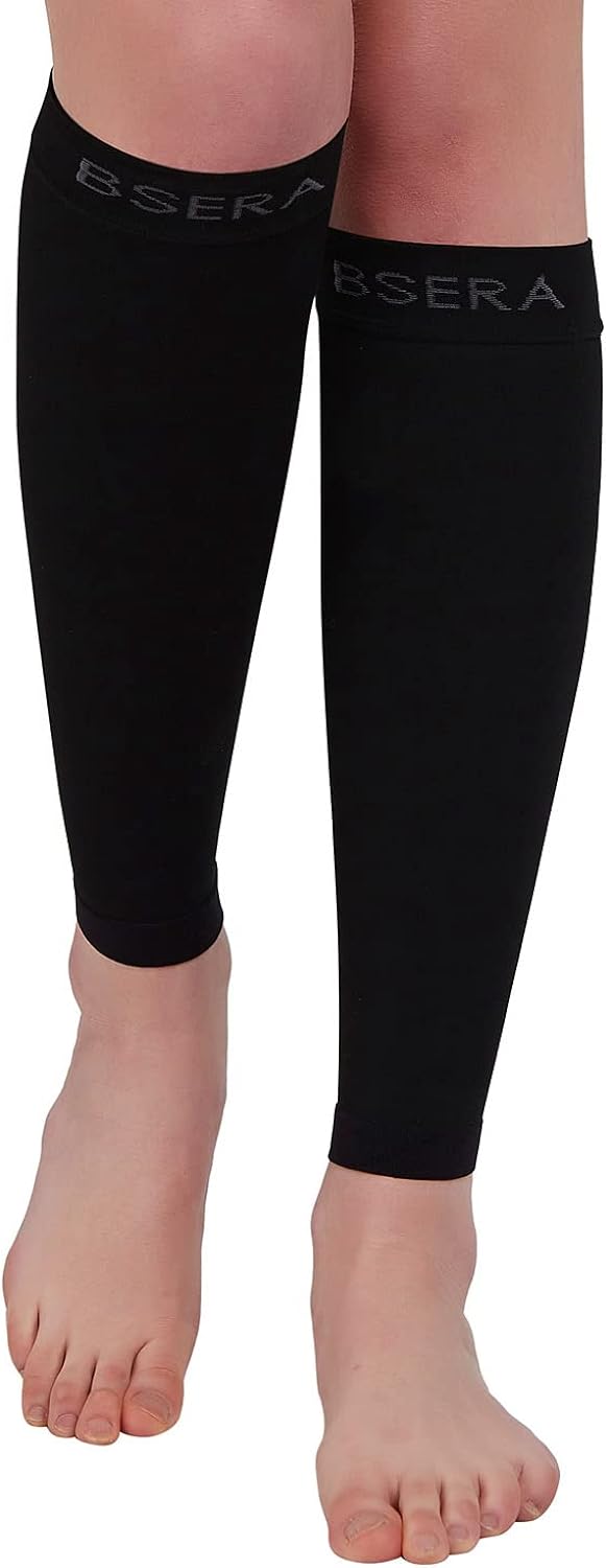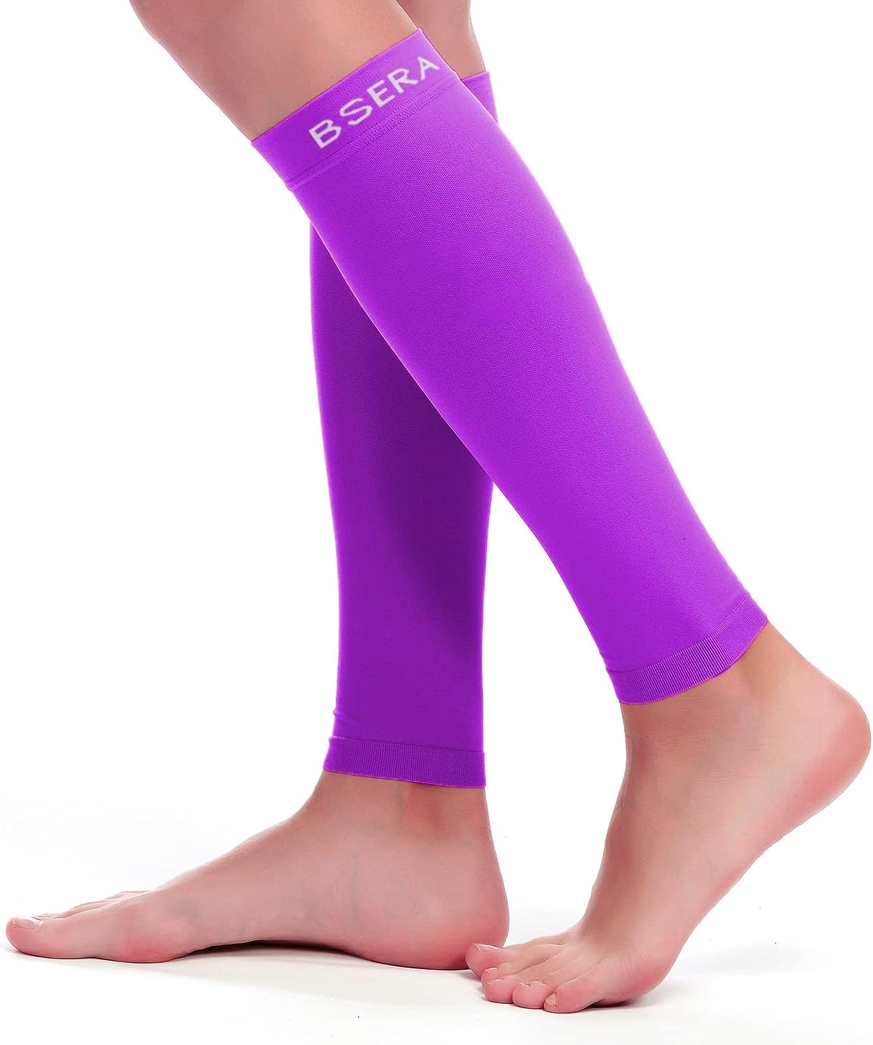 BSERA Calf Compression Sleeve Women, 2 Pairs 20-30mmHg Footless Compression Socks for Swelling Shin Splints Varicose Veins
