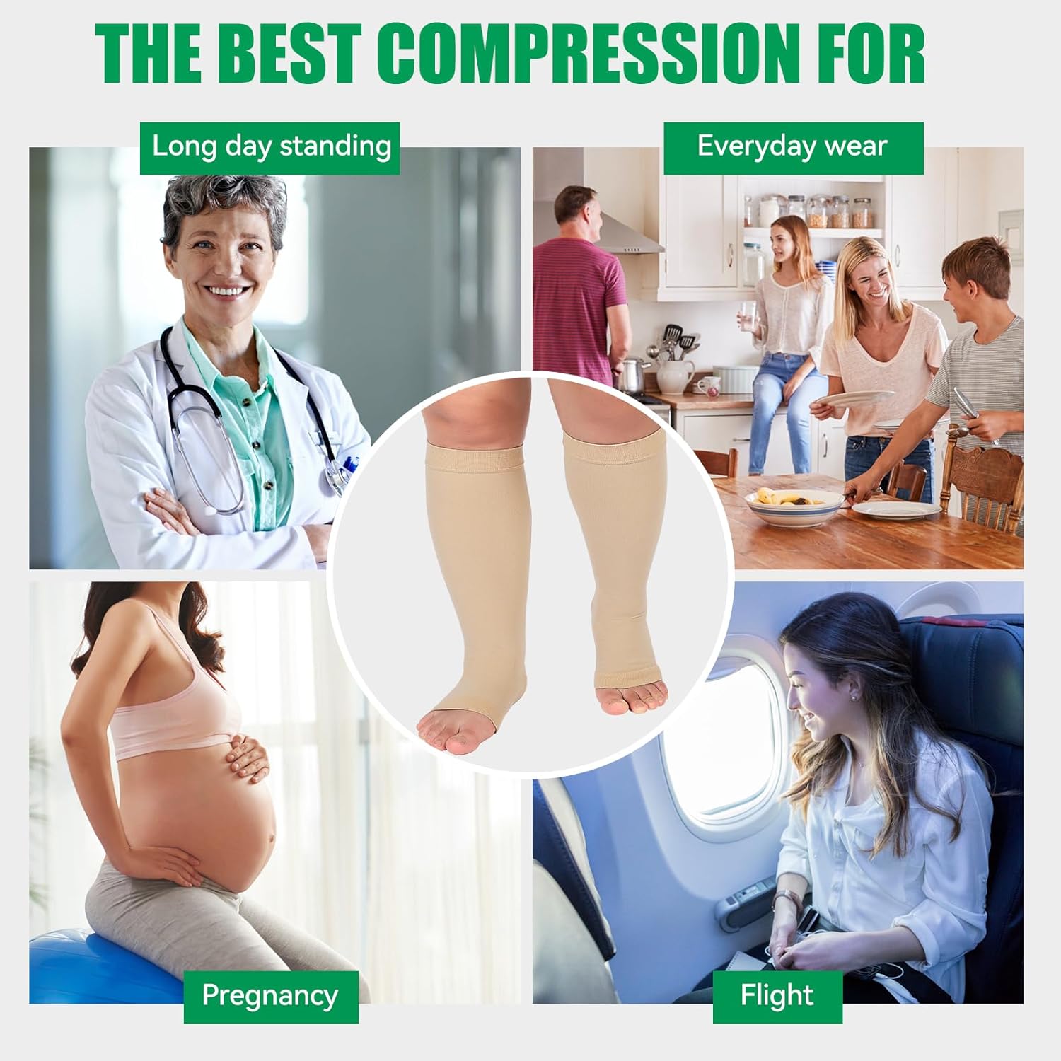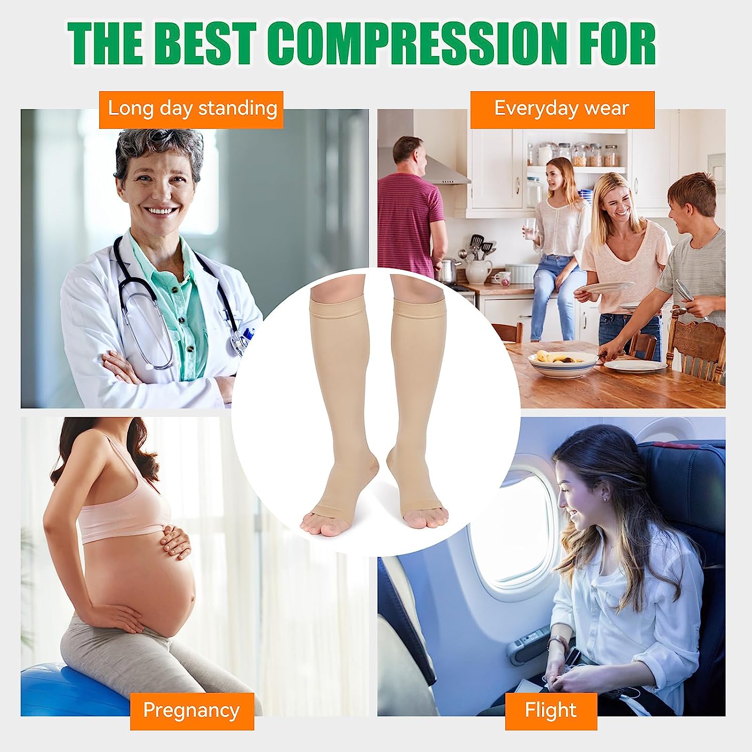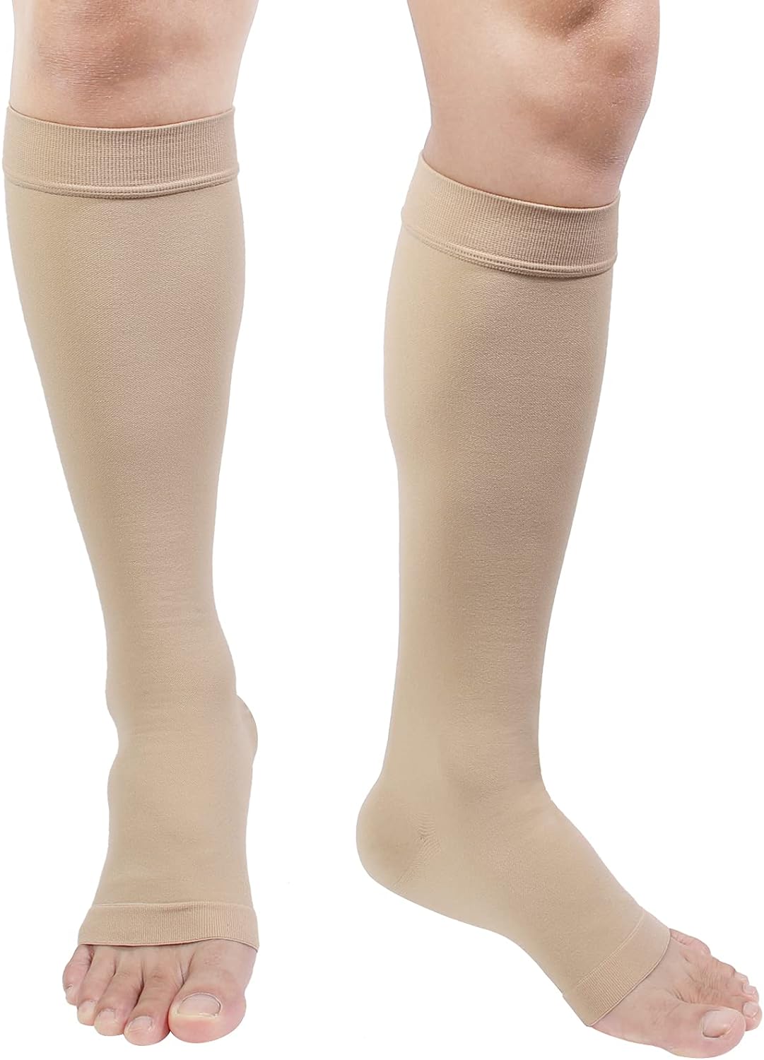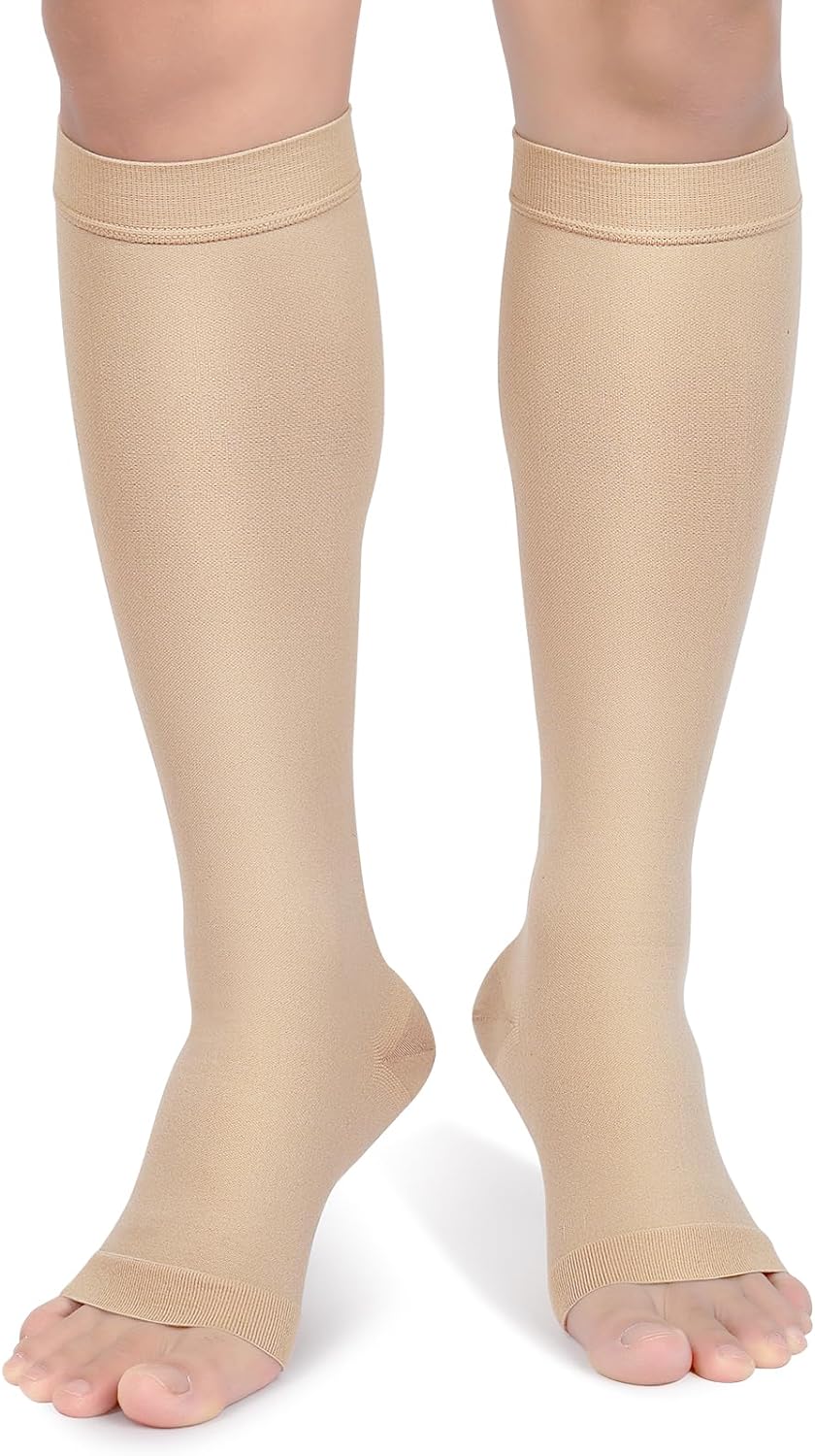 Compression Socks, 20-30 mmHg Graduated Knee-Hi Compression Stockings for Unisex, Open Toe, Opaque, Support Hose for DVT, Pregnancy, Varicose Veins, Relief Shin Splints, Edema, Beige X-Large