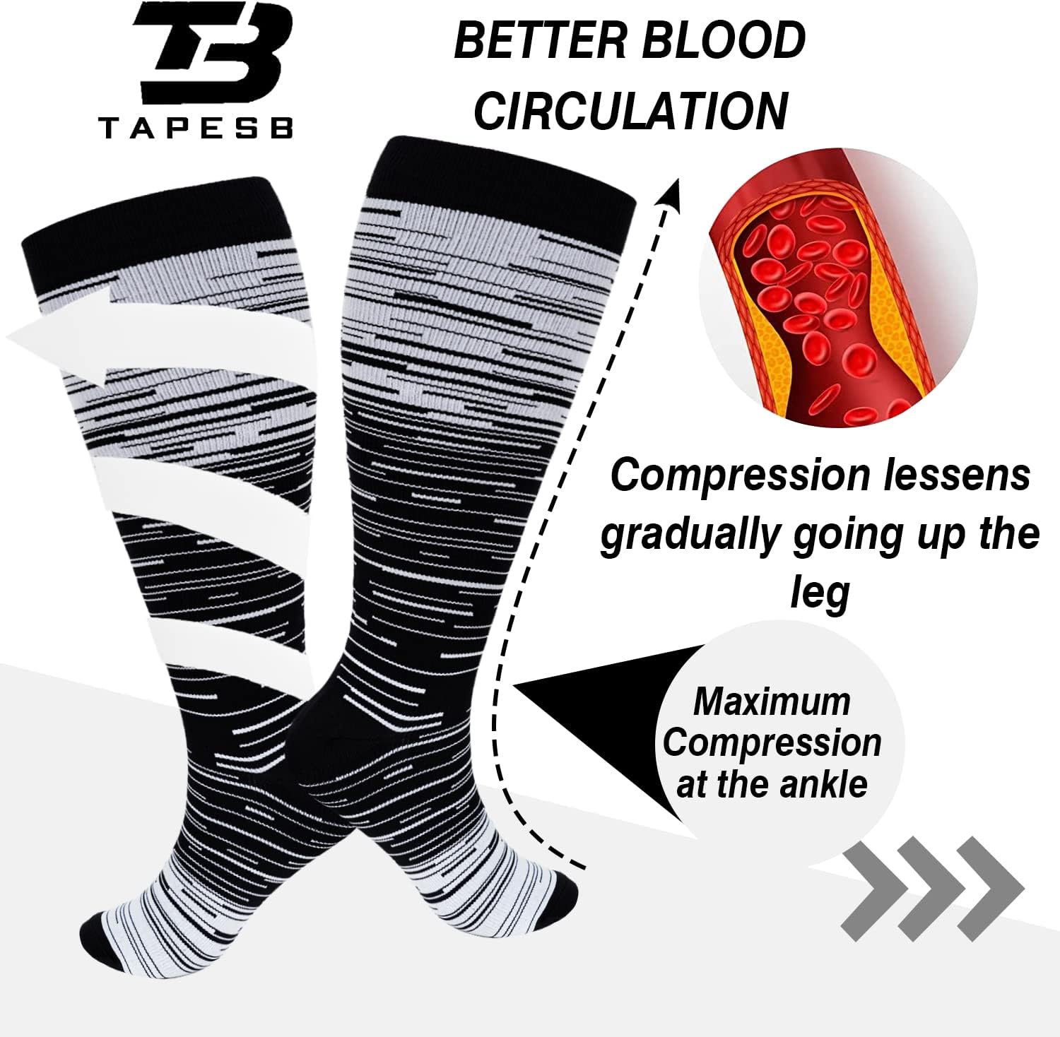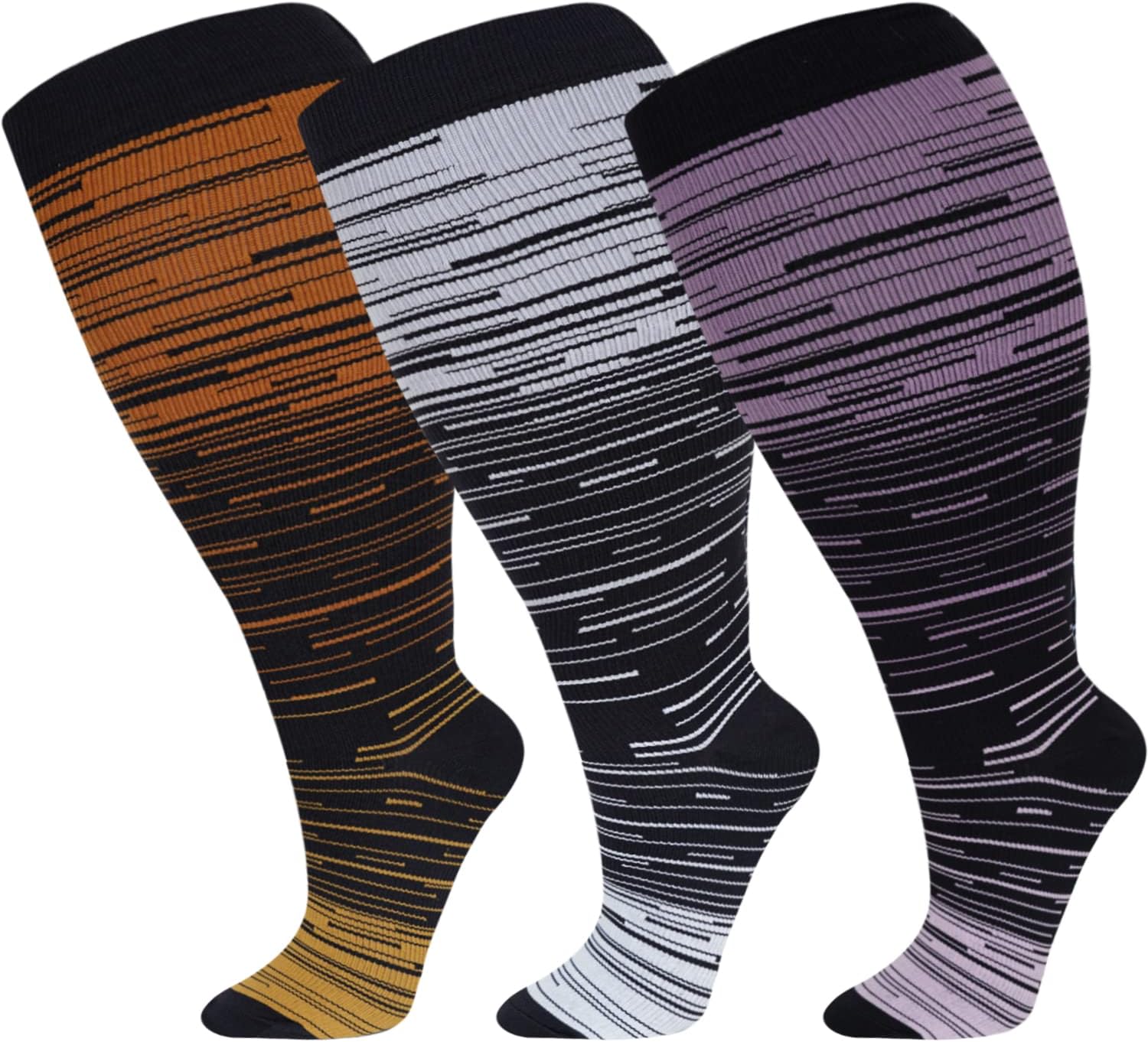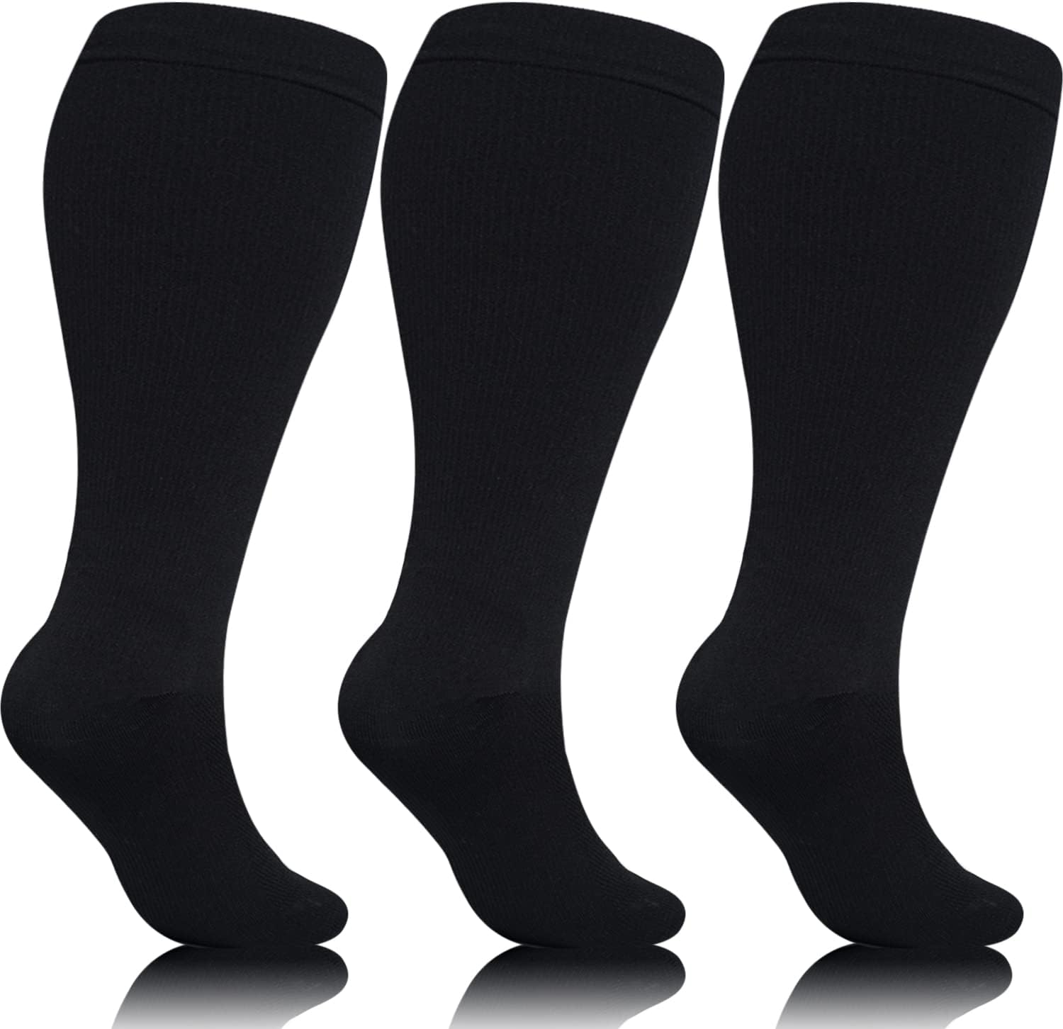 Tapesb 3 PCS Plus size compression socks knee high wide calf 20-30 mmhg 2xl 3xl 4xl 5xl circulation breathable for nurse varices