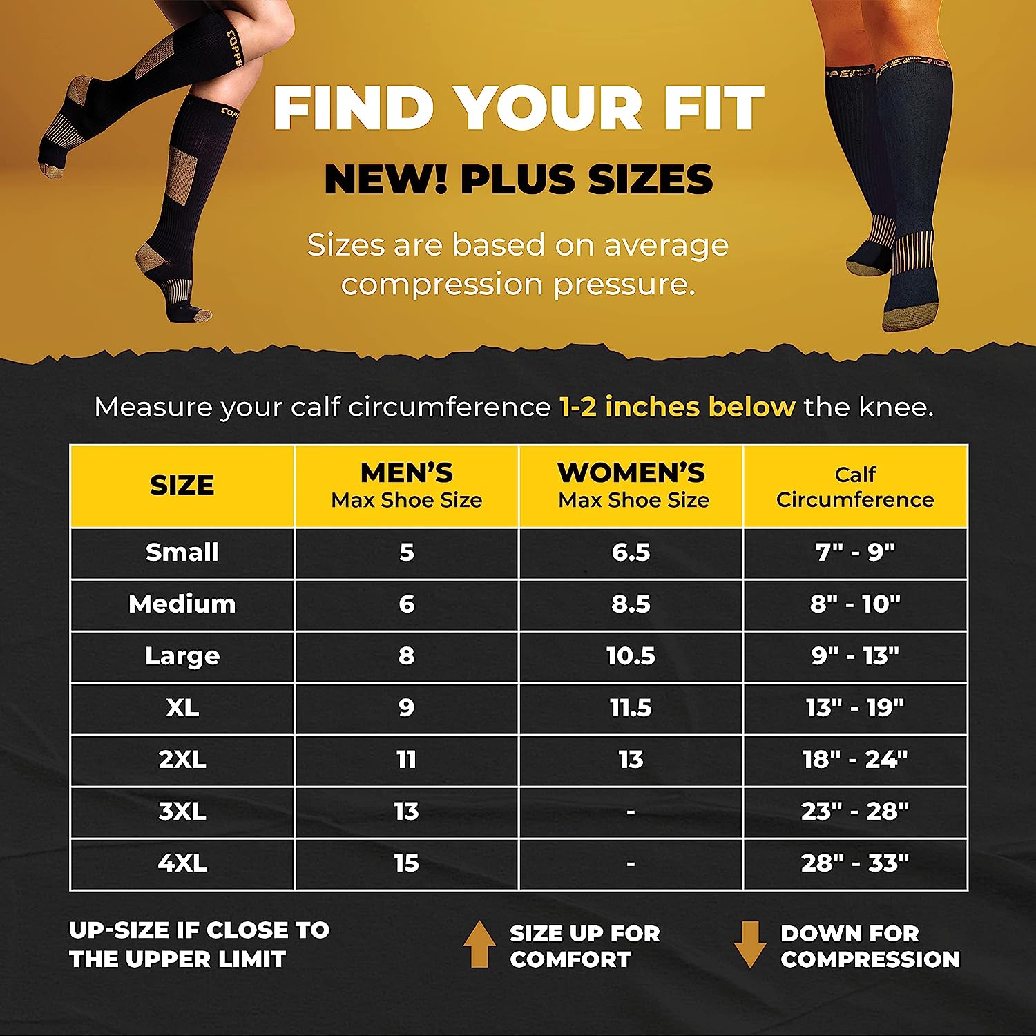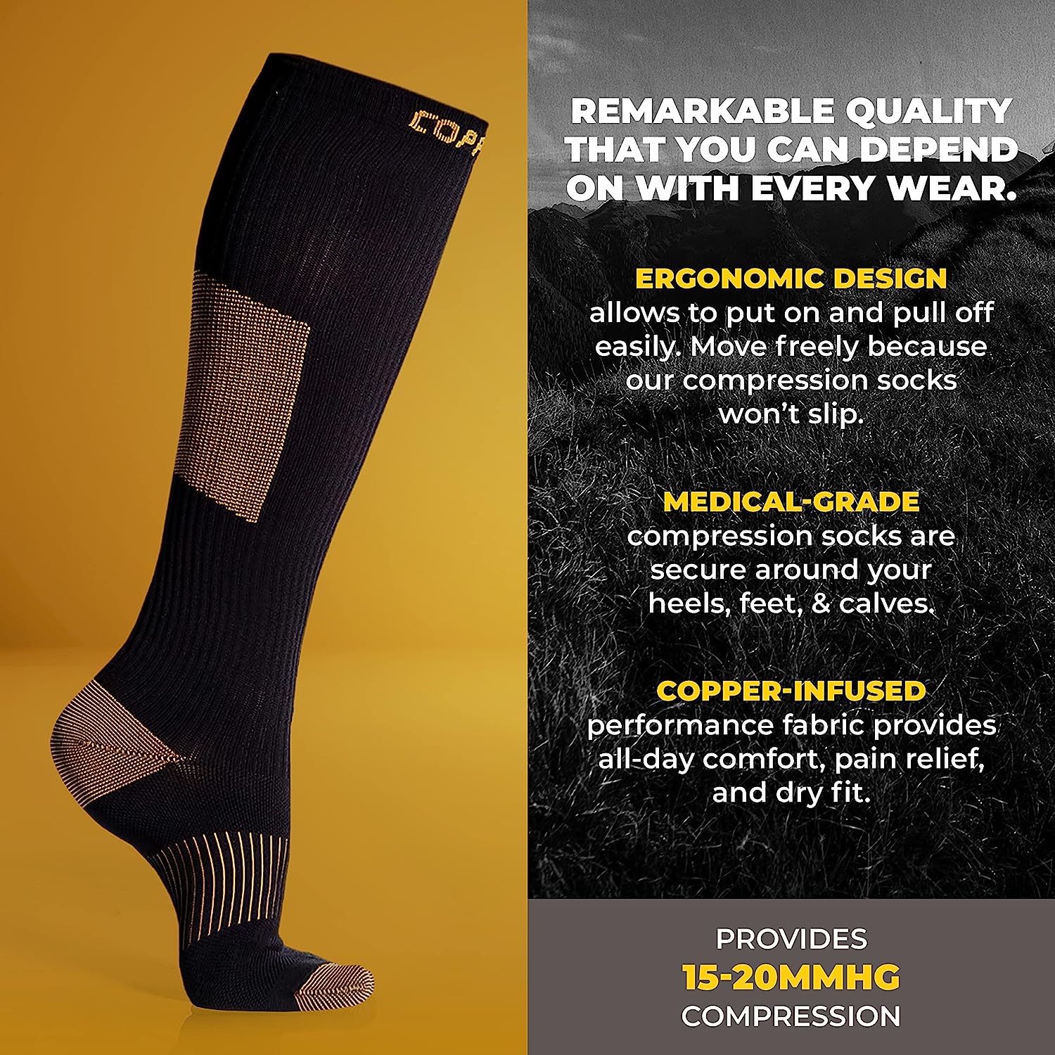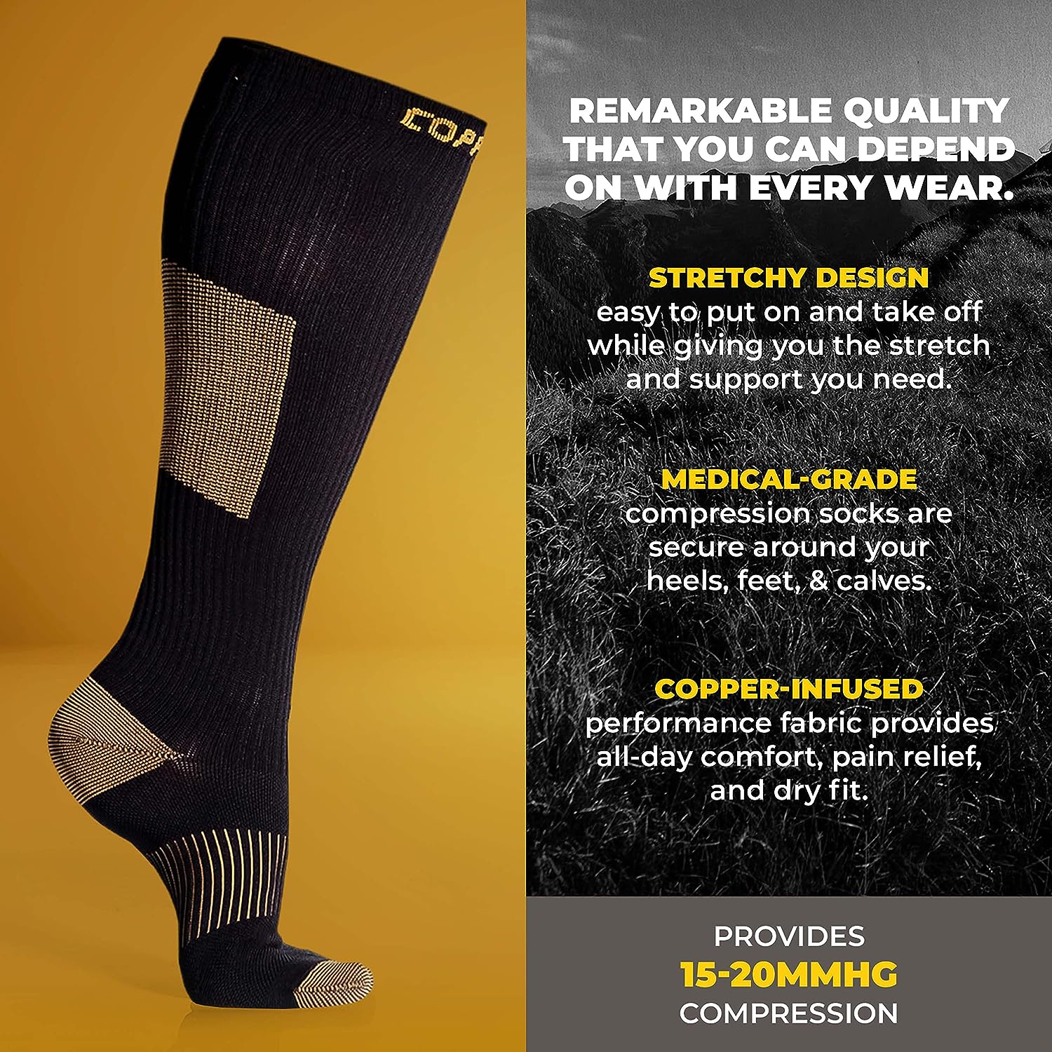 Our copper compression socks are here to help you in any situation. Our diabetic socks for men and women can be used as running socks, hiking socks, compression socks for nurses, maternity compression socks, and more. They help treat soreness, growing pains, shin splints, varicose veins, and many other leg pains you may experience. They can also help promote blood flow and circulation. These also make great compression socks for pregnant women and compression socks for women circulation. Get the support you need so you can live pain free!