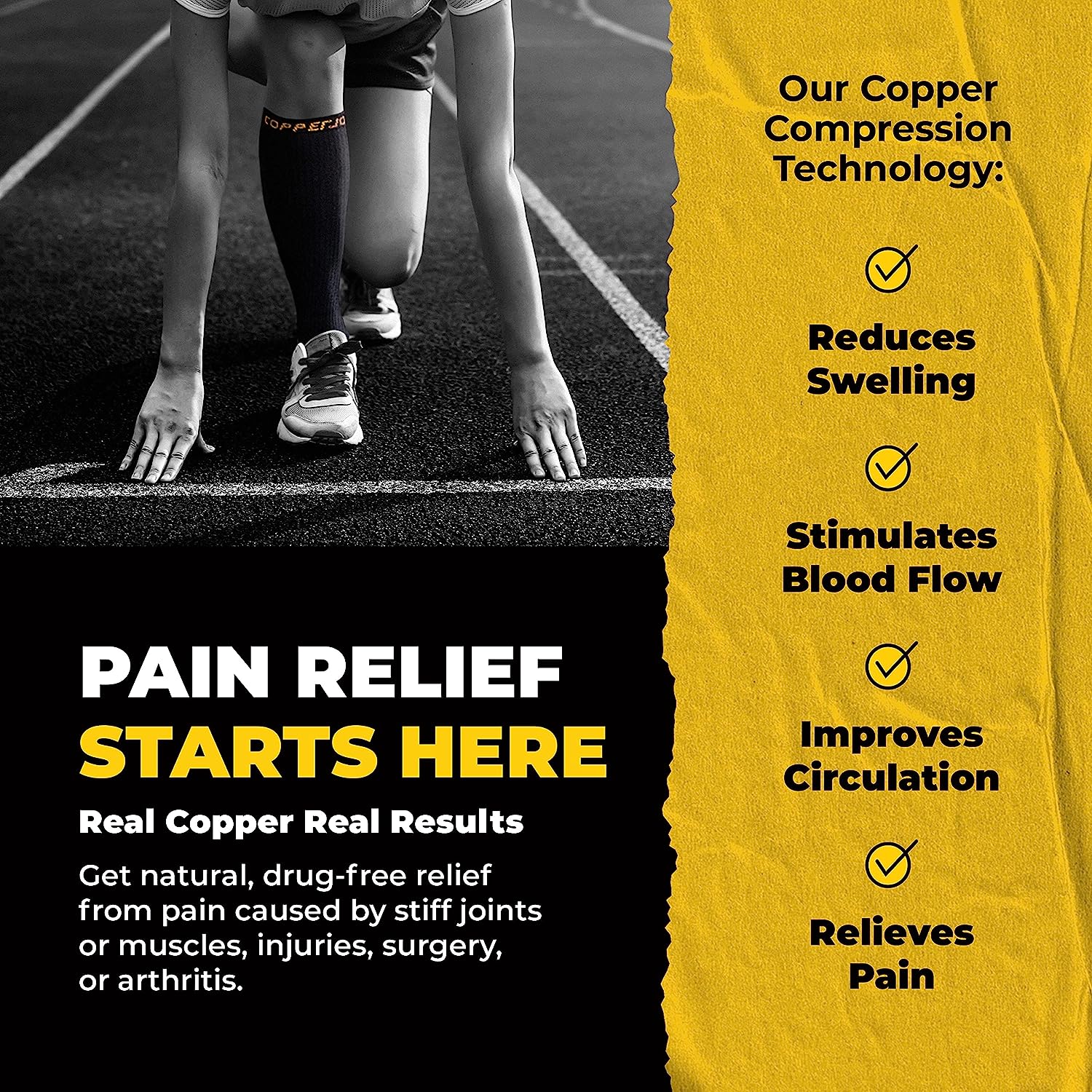 If you're looking for a way to relieve leg pain, then CopperJoint Long Compression Socks are a must. They provide optimal support while still allowing you to have full mobility and be comfortable throughout your day. They fit high on your leg just under your knee to provide calf and ankle compression and overall leg pain relief.