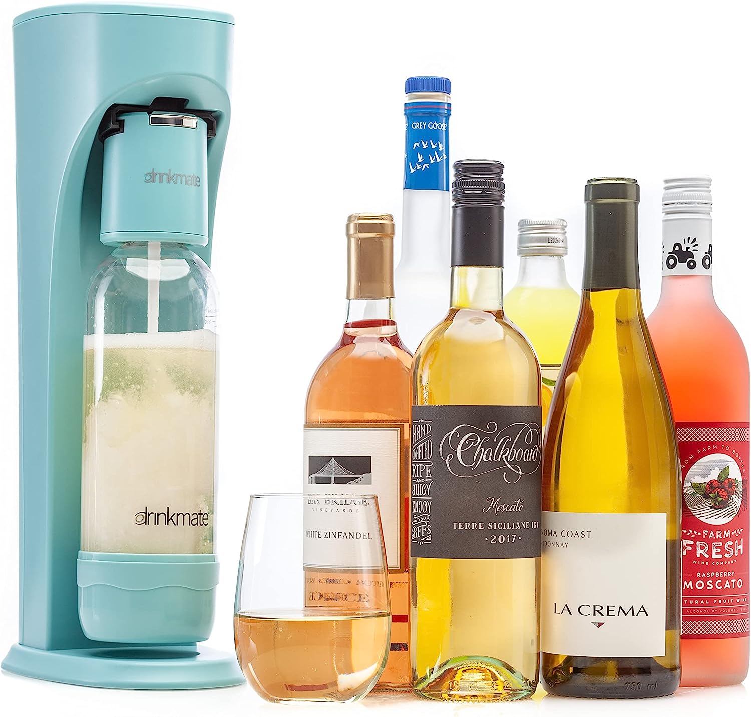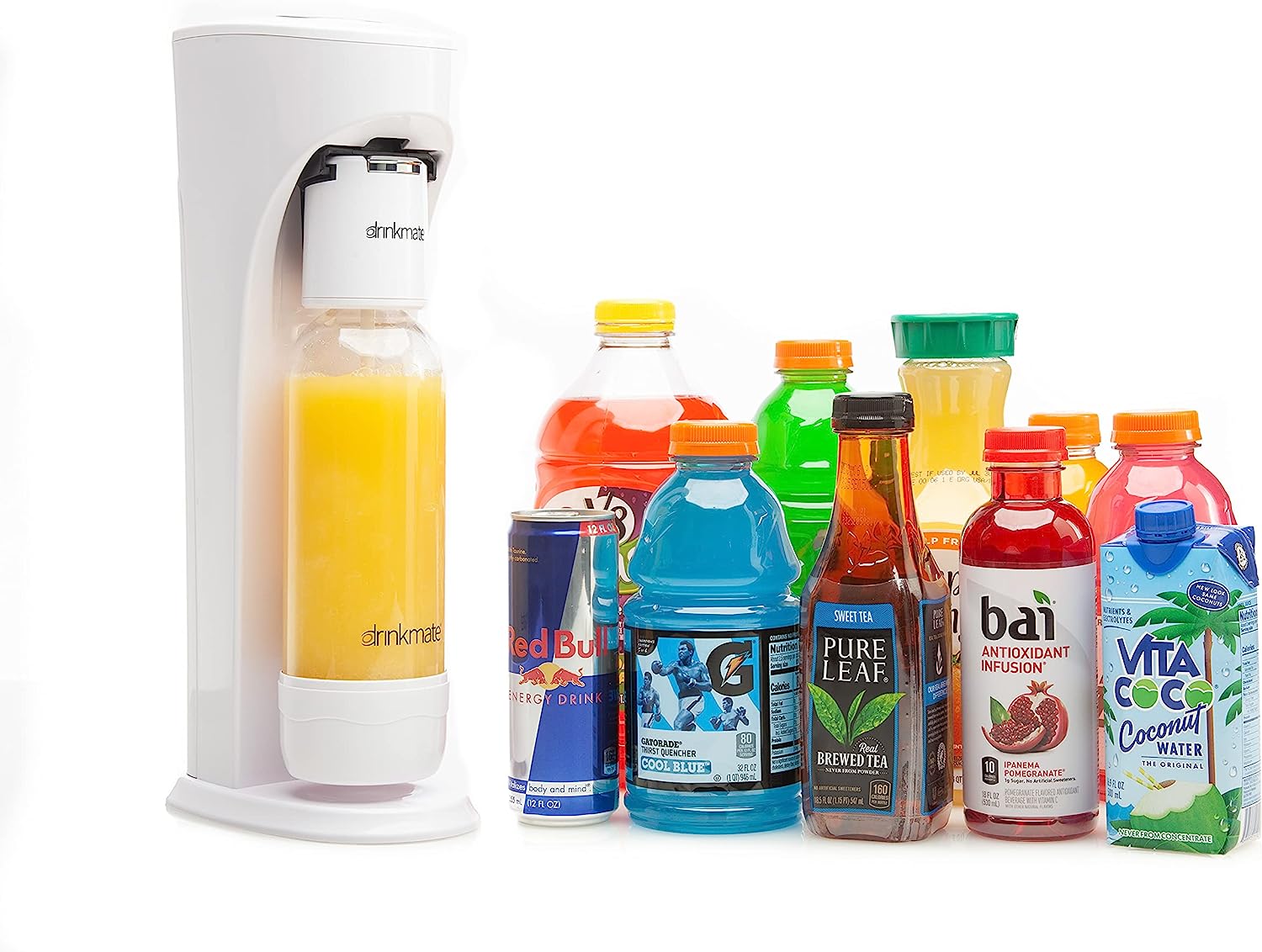 • INCLUDES: Drinkmate sparkling beverage maker, a 1L BPA-Free Carbonating Quick-Connect Bottle with volume measurement lines, and Fizz Infuser. Order CO2 supplies separately.