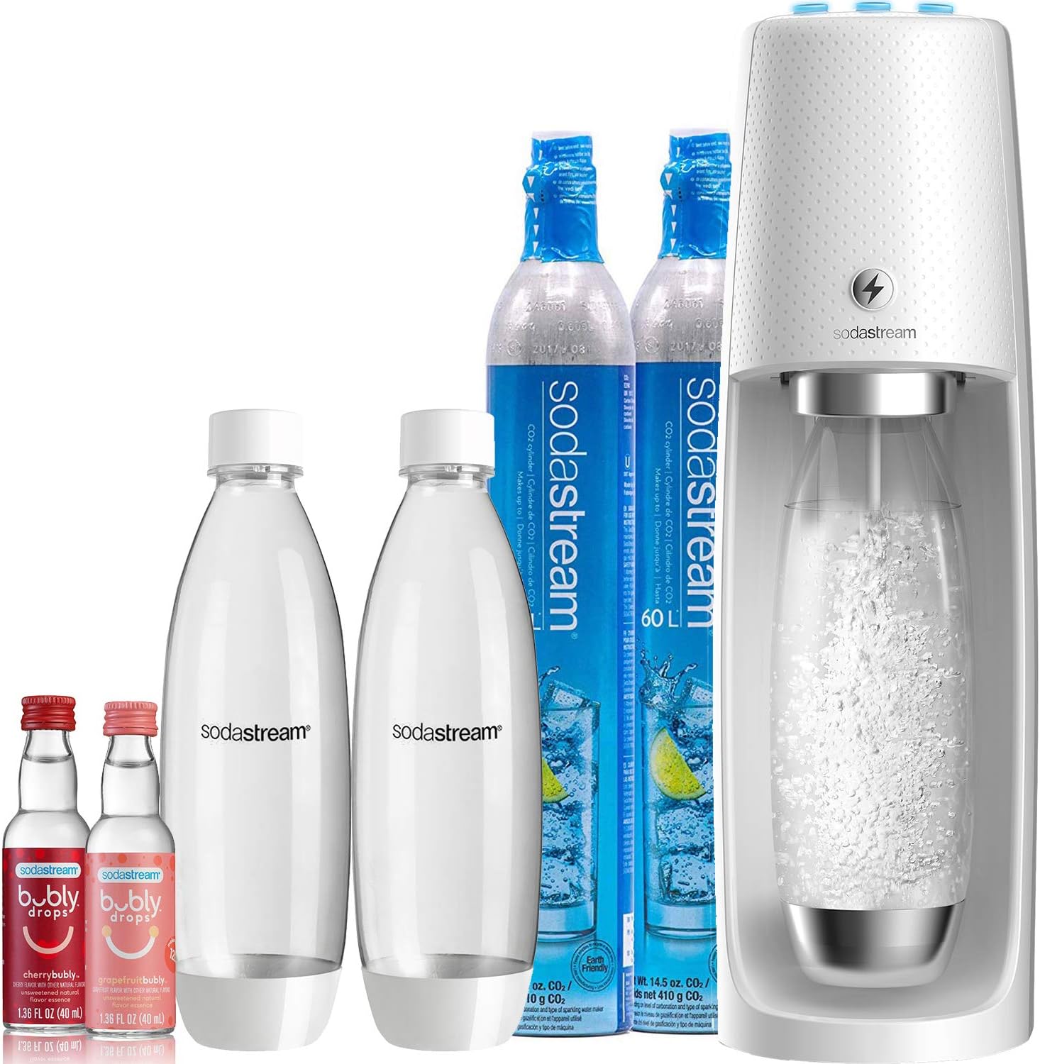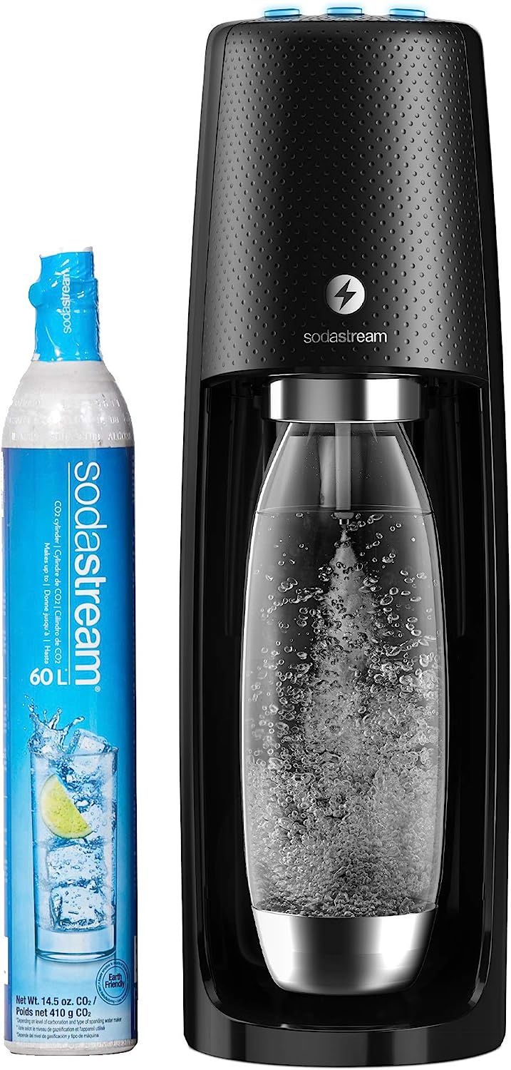 • Includes: Sparkling Water Maker, 60L CO2 cylinder, and 1 Liter BPA-free reusable carbonating bottle