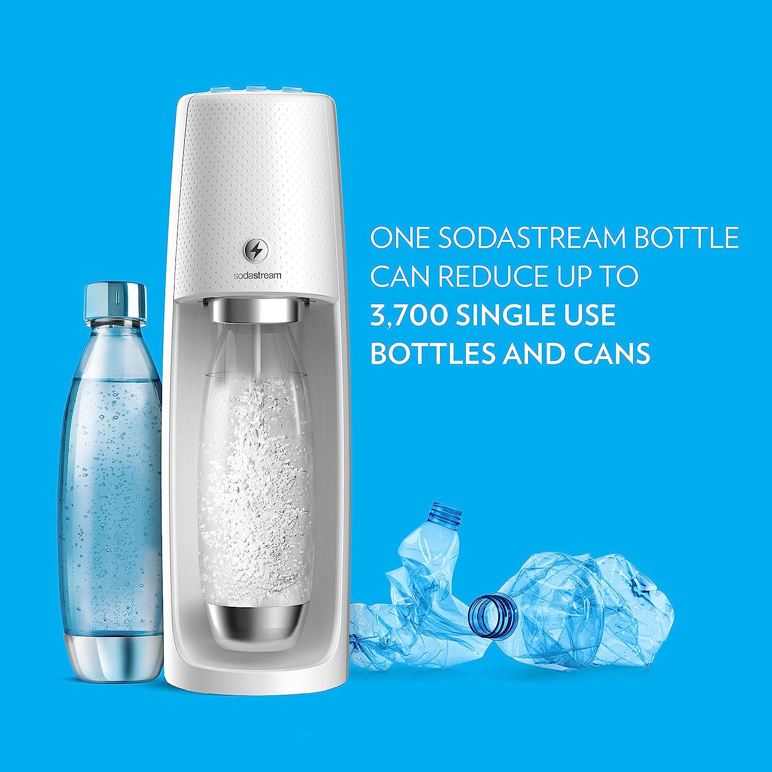 The fizzy one touch is sodastream’s newest electric sparkling water maker that can turn plain water into sparkling water with the touch of a button. The slim design, with metallic features, Offers an elevated user experience while answering the functional needs of simplicity and ease of use for your home or office. The machine features the company's proprietary snap-lock technology that instantly "clips" In the BPA- free carbonating bottle for quick carbonation at home or in the office. This kit includes the fizzy one touch sparkling water maker, 60L CO2 cylinder, and 1L slim carbonating bottle. Everything needed to start sparkling today. Just add water!