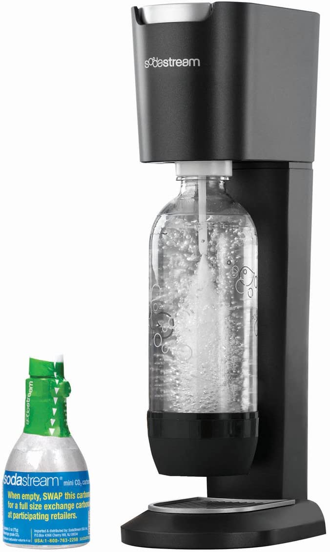 The Sodastream Genesis is designed with a modern twist on a ‘soda fountain’ look, perfect for a timeless Sodastream consumer. The fun pumping action, combined with the original buzz sound long-time users prefer, this is a must have. Bring the sleek & slender elegance of the Genesis into your home and truly enjoy a sparkling drink. Contents include; (1) Genesis Sparkling Water Maker, (1) Mini CO2 Carbonator (makes up to 9L of sparkling water), (2) 1L BPA-Free Reusable Carbonating Bottle, and a 60 Liter CO2 Carbonator mail-in rebate.