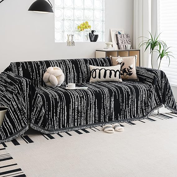 Couch Covers for 3 Cushion Couch Sofa Pet Friendly, Sofa Covers Washable Loveseat, Chenille Couch Cover for L Shaped Couch, Sofa Slipcovers for 2 Cushion Couch (71" X 150", Black)