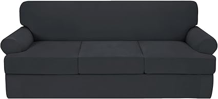 Deeky 4 Pieces Stretch Sofa Covers T Cushion Sofa Slipcover Soft Fleece Couch Cover Furniture Protector Covers with 3 Individual T Cushion Shape Seat Cover Machine Washable, Sofa, Dark Gray