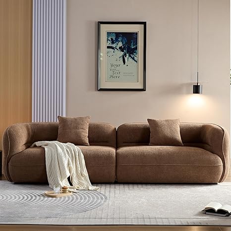 110" Luxury Sectional Sofa, Cloud Loveseat, Modern Boucle Fabric Upholstered Modular Sofa with 2 Pillows, Couches for Living Room, Small Spaces, Office, Apartment (Camel)