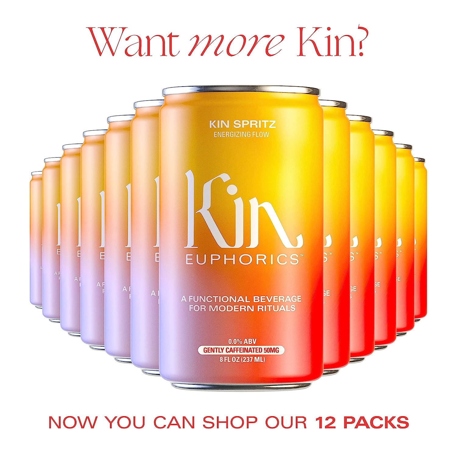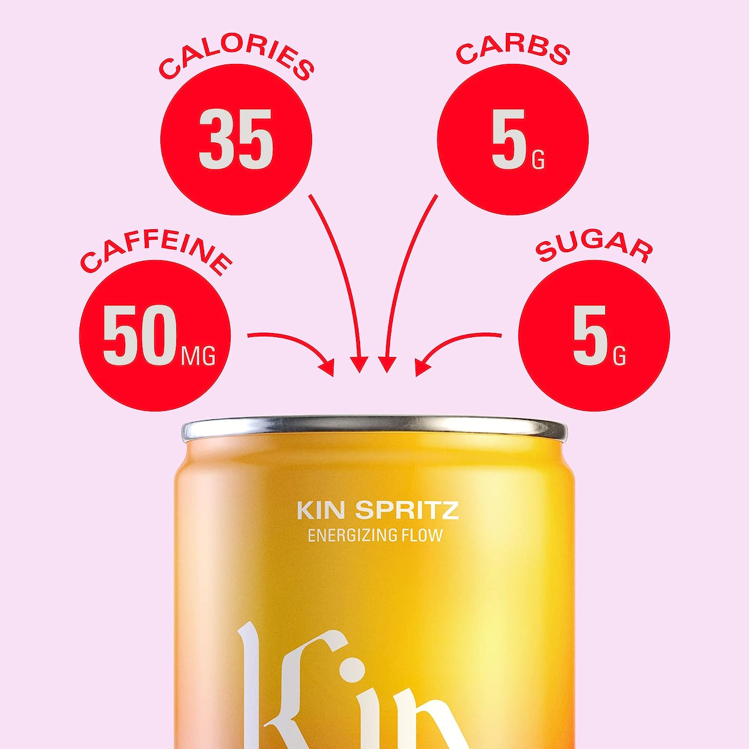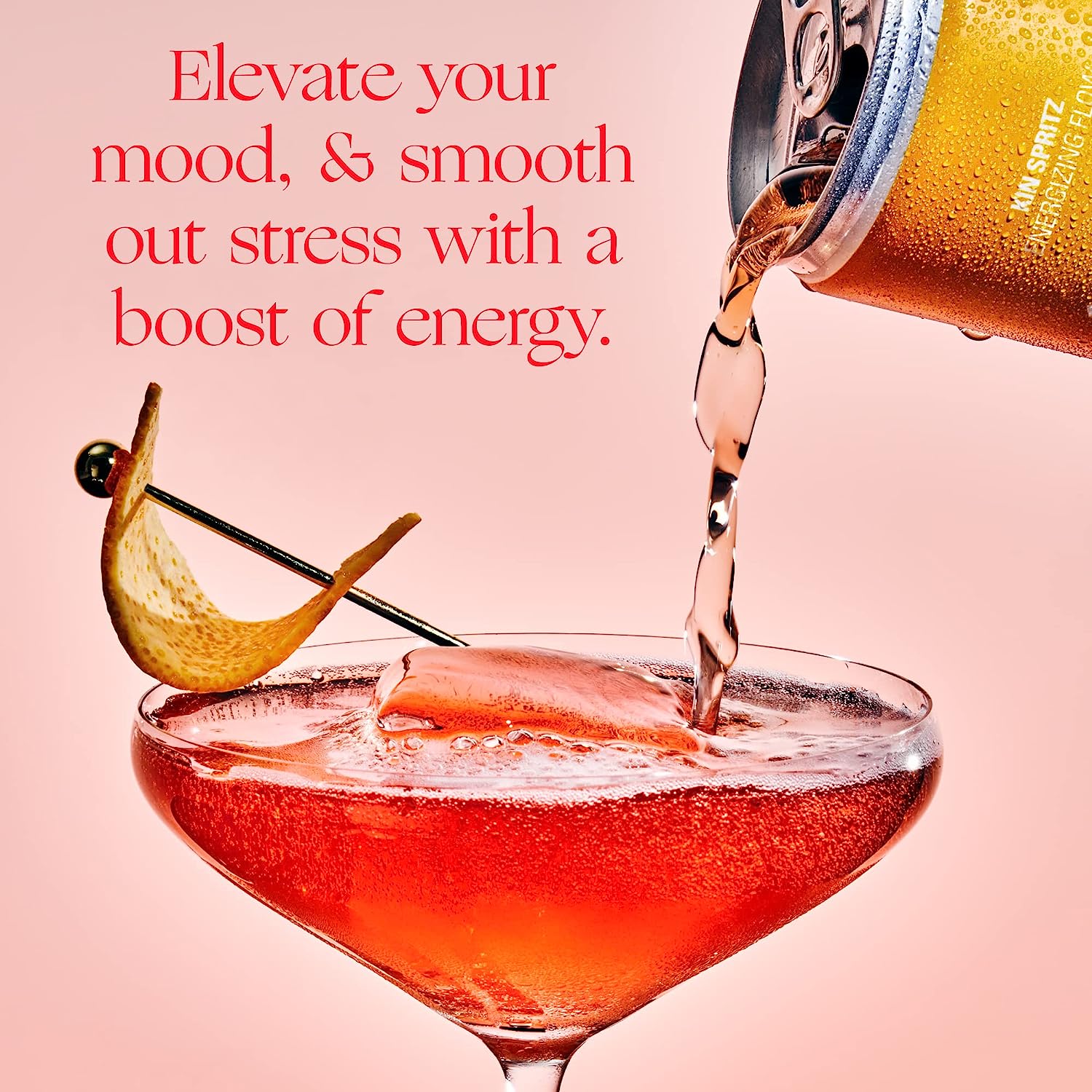 Kin Spritz by Kin Euphorics, Non Alcoholic Spirits, Ready to Drink, Adaptogen, Nootropic, Botanical, Fresh Citrus, Hibiscus, Caffeine, Rhodiola Rosea, Awaken the Mind, Uplift the Mood, 8 Fl Oz (4pk)