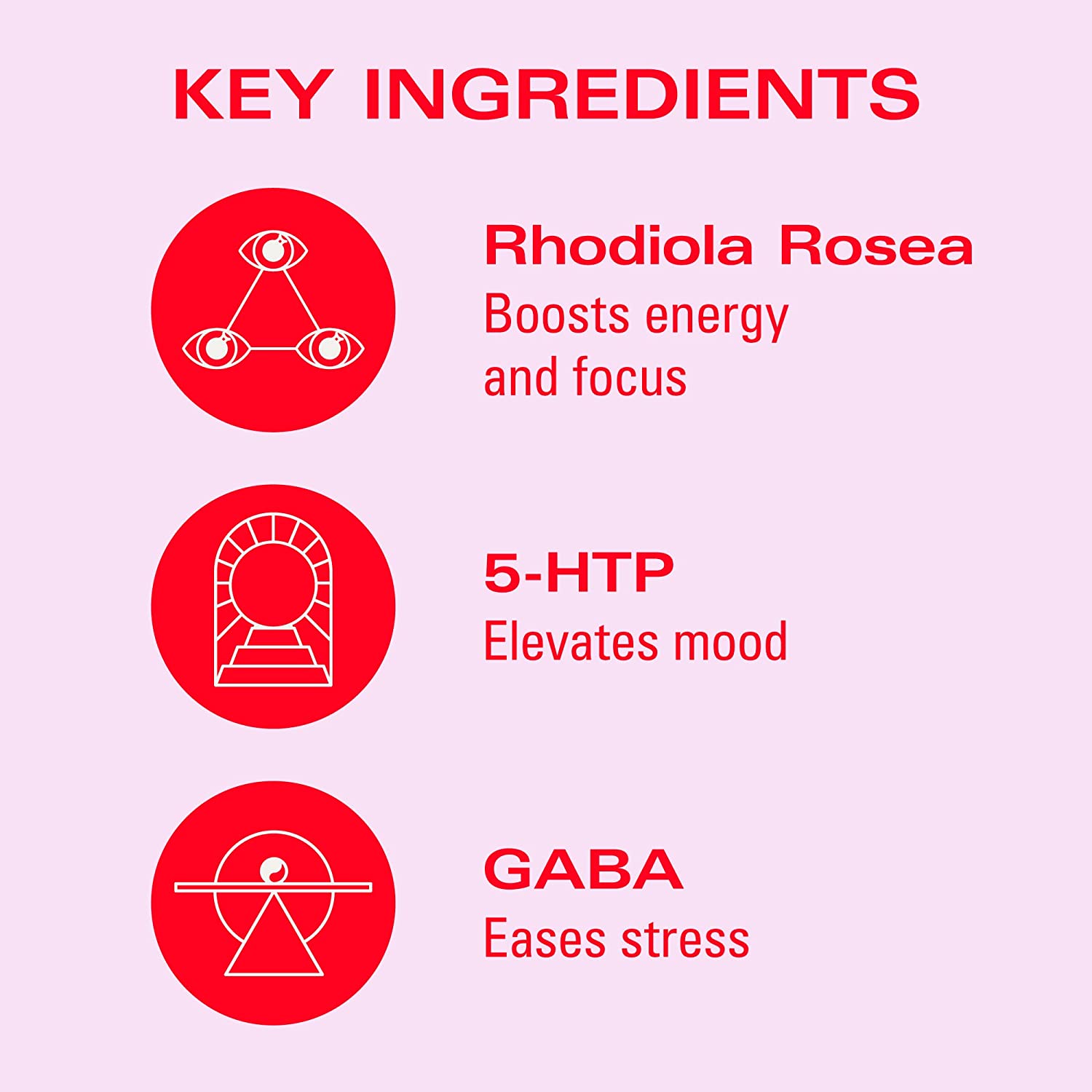 • Experience a clear, awakened mind, and a bubbly sense of connectivity. Balance the body’s response to stress. Enhance the mind and sharpen attention. Count on a blissful rise with no regrets the next day — just grab and flow.