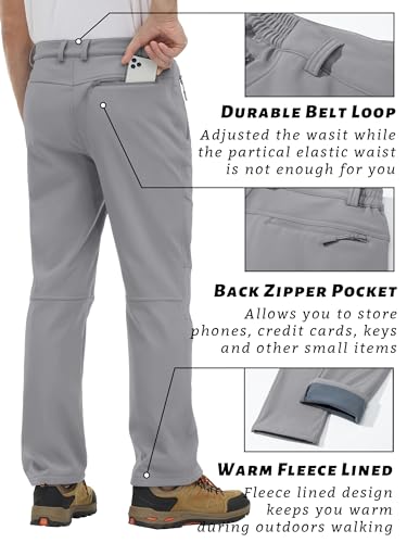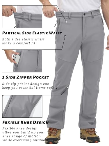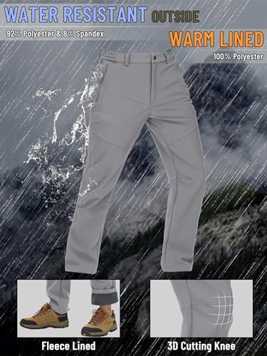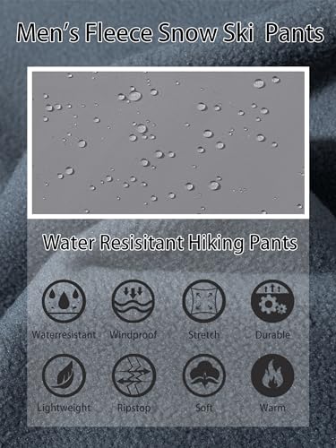 Details: Men's Snow Pants Waterproof Hiking Work Pants Fleece Lining Soft Shell Pants Trousers Material: Nylon & Spandex Color: Black, Dark Grey, Blue Grey, Light Grey, Army Green, Khaki, Navy Size: US: 30-40 Style: Casual/Sports ATTENTION The color of the item may vary slightly due to the different shooting options computer screens or other factors OCCASION Ideal choice for daily wear and outdoor active. Perfect for hiking, climbing, golf, fishing, camping, hunting, traveling, training.