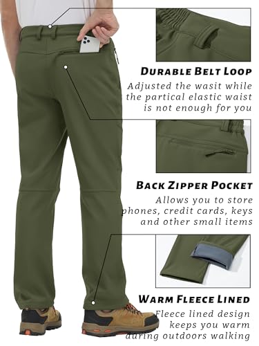 TACVASEN Men's Hiking Pants with Zipper Pocket Winter Fleece Snow Ski Pants Army Green, 32