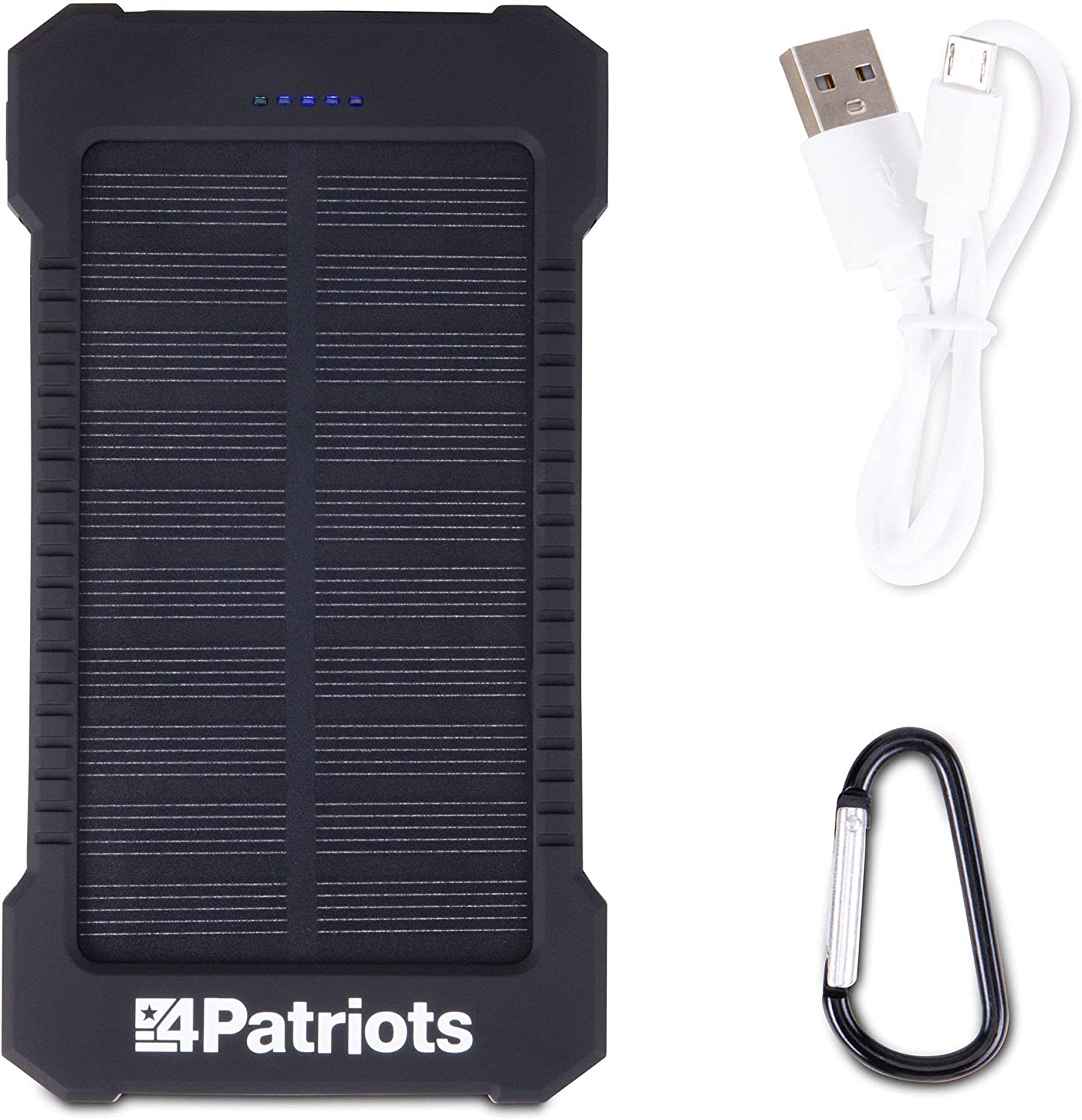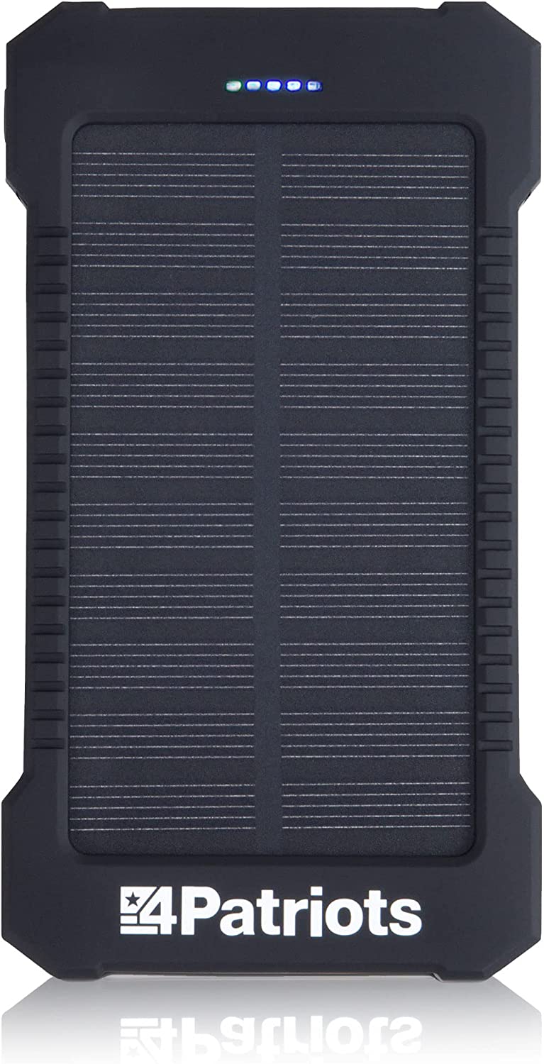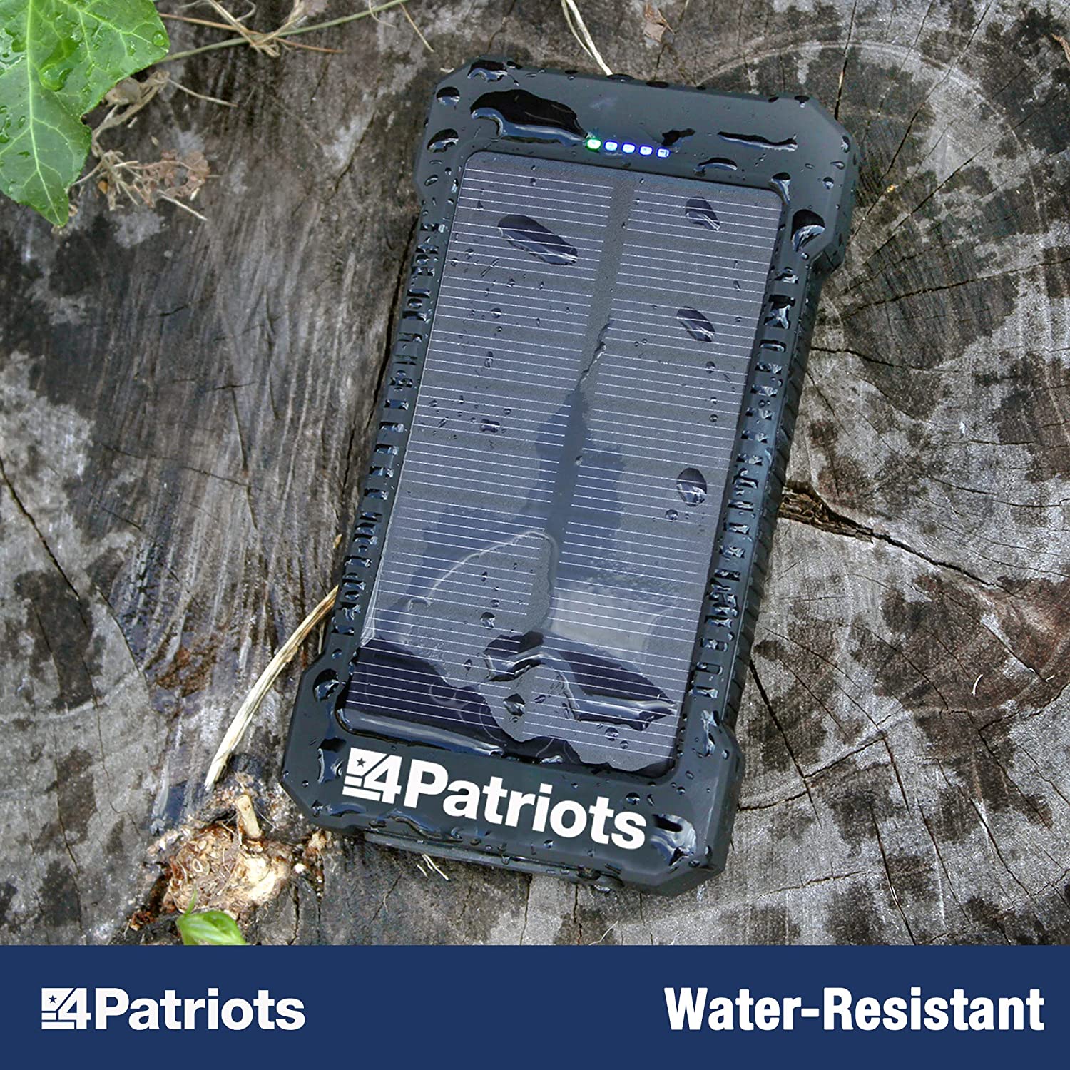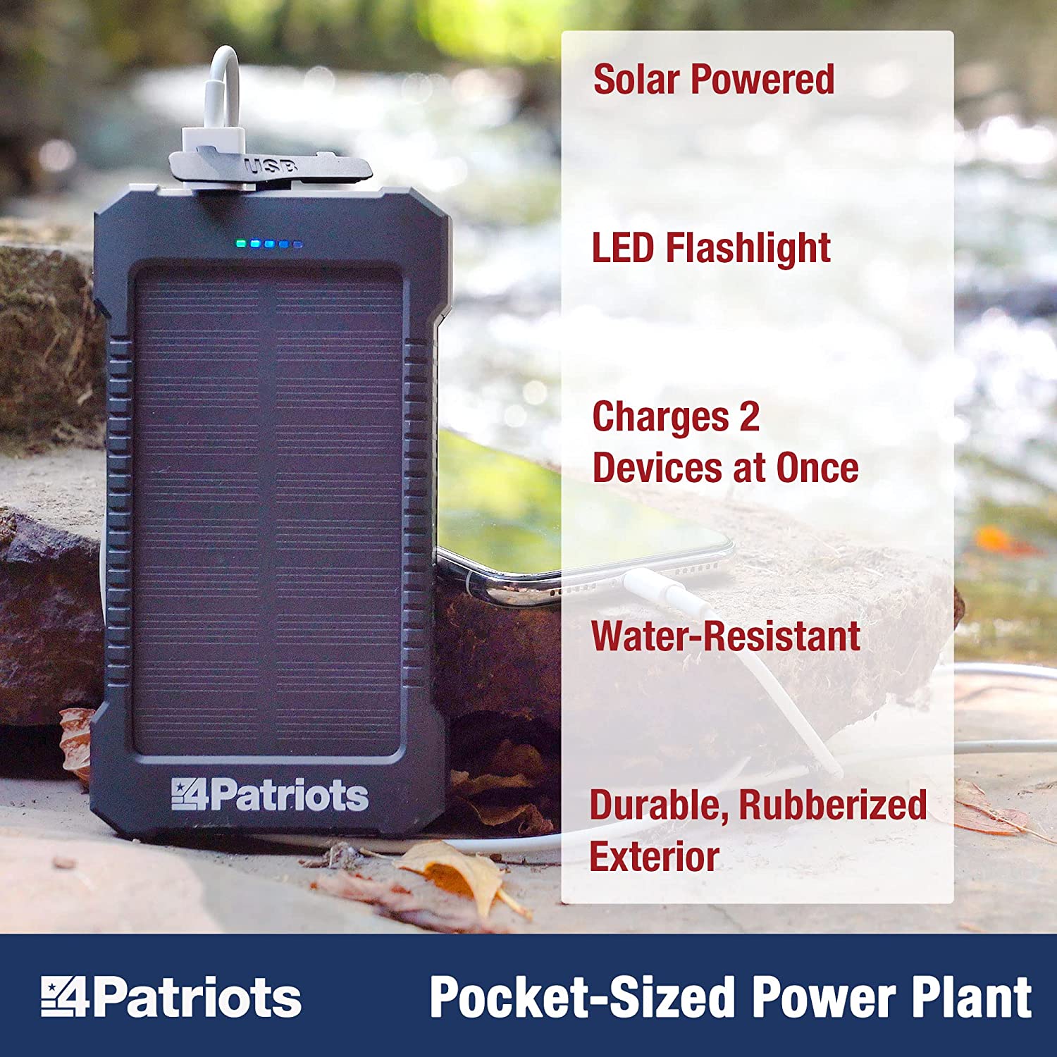 4PATRIOTS Patriot Power Cell: Portable Solar Power Bank, Rechargeable External Battery 2 USB Ports, 8,000 mAh Lithium Polymer Battery, LED Flashlight and IP67 Water Resistant for Hiking or Emergencies