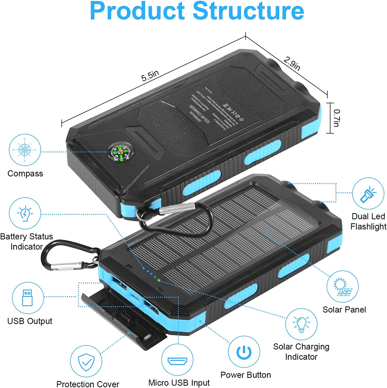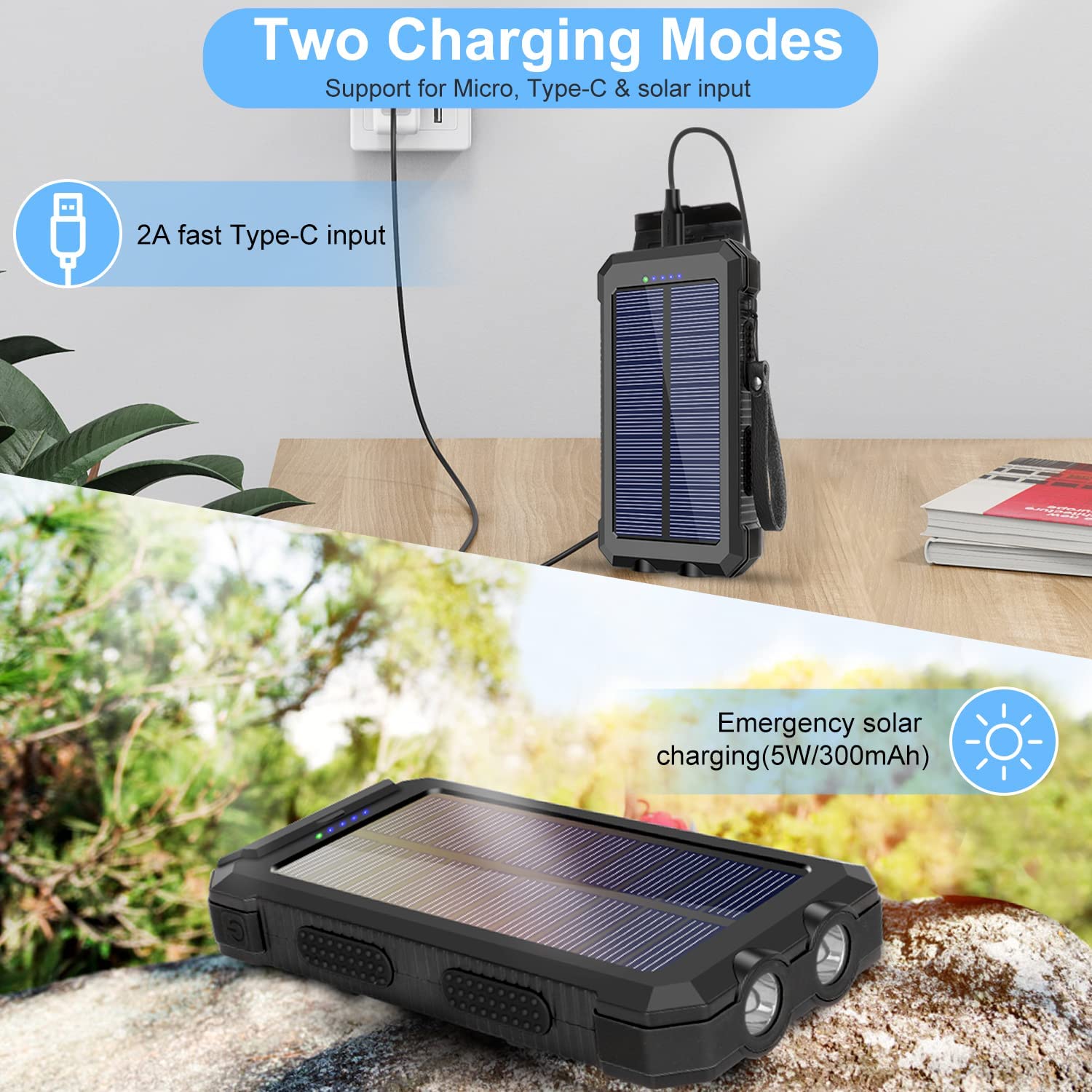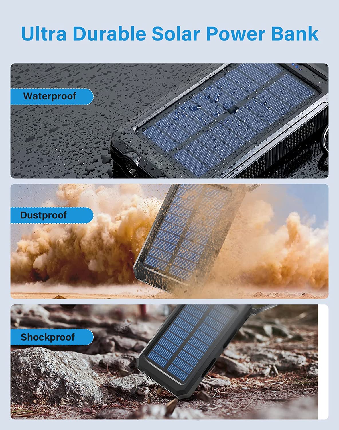 • ✔【USB & Solar Charging】- Our solar power bank support USB and solar charging. Note: Using an AC outlet makes charging the solar battery charger full faster; As solar charging is affected by many factors, charging is not as good as expected. If you don't mind that, this solar charger bank will be your best choice.