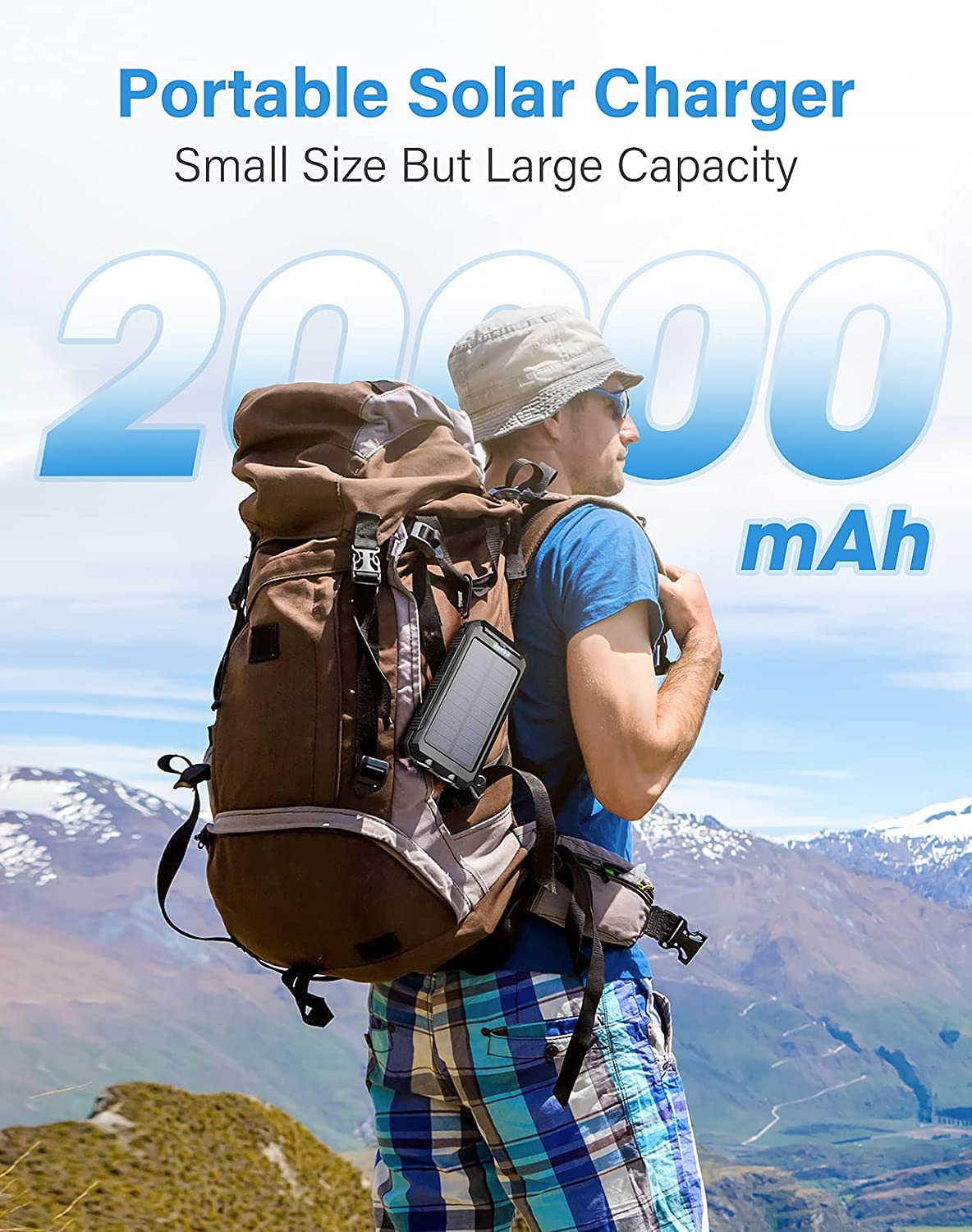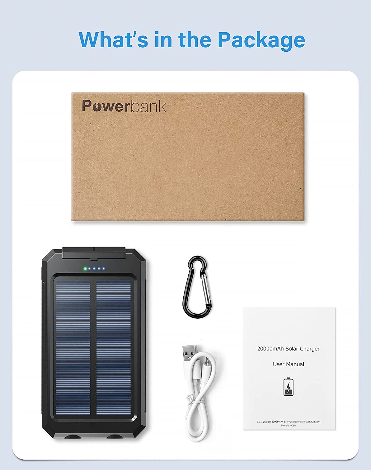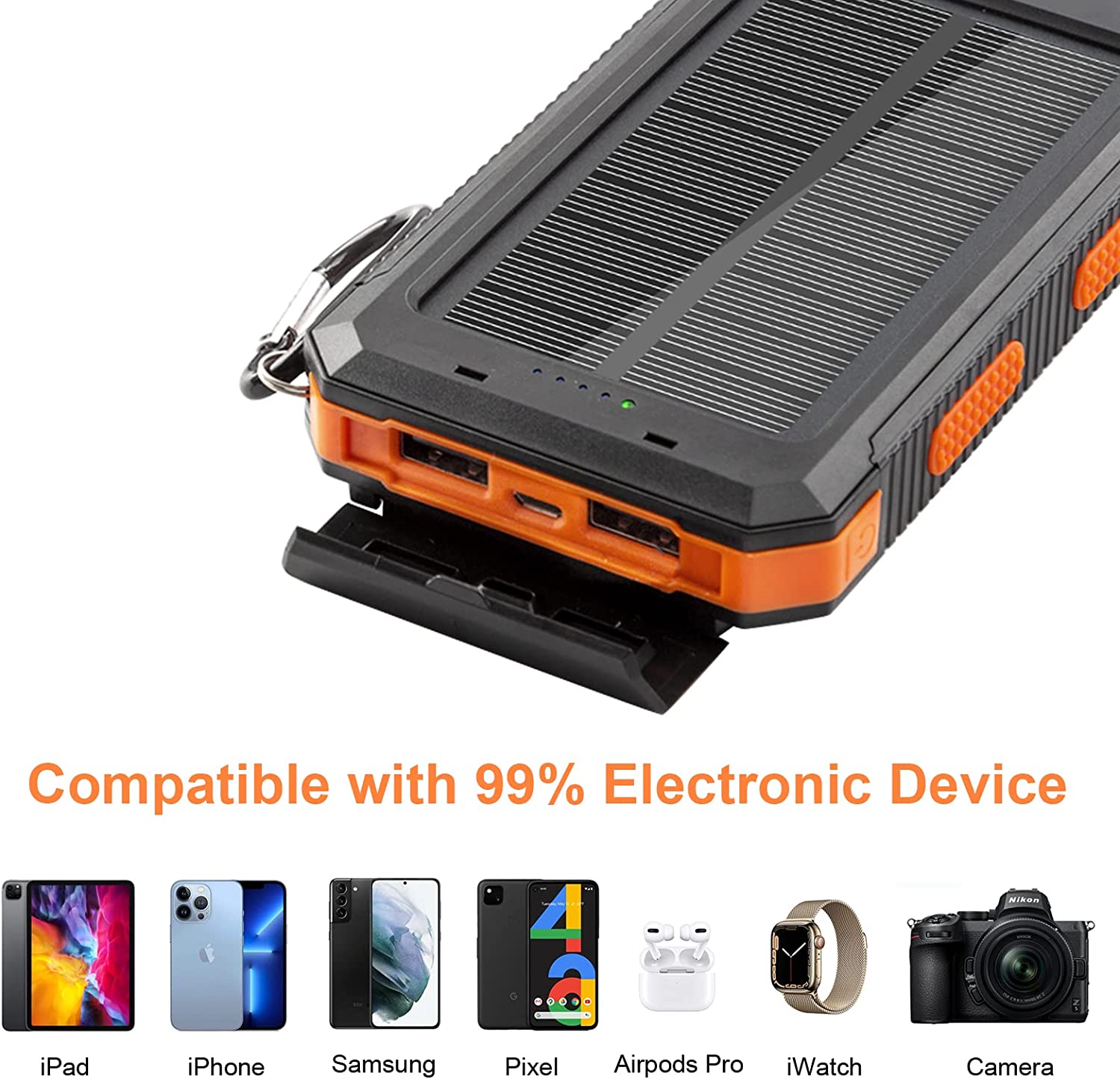 • ✔【USB & Solar Charging】- Our solar power bank support USB and solar charging. Note: Using an AC outlet makes charging the solar battery charger full faster; As solar charging is affected by many factors, charging is not as good as expected. If you don't mind that, this solar charger bank will be your best choice.