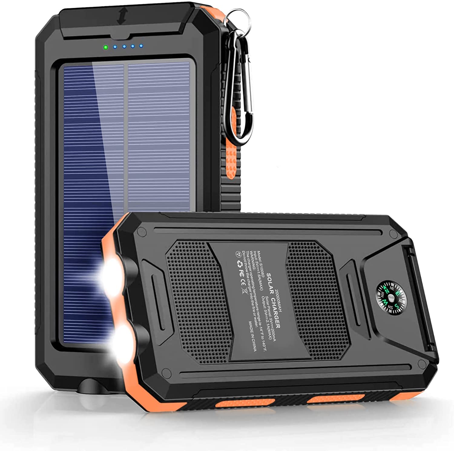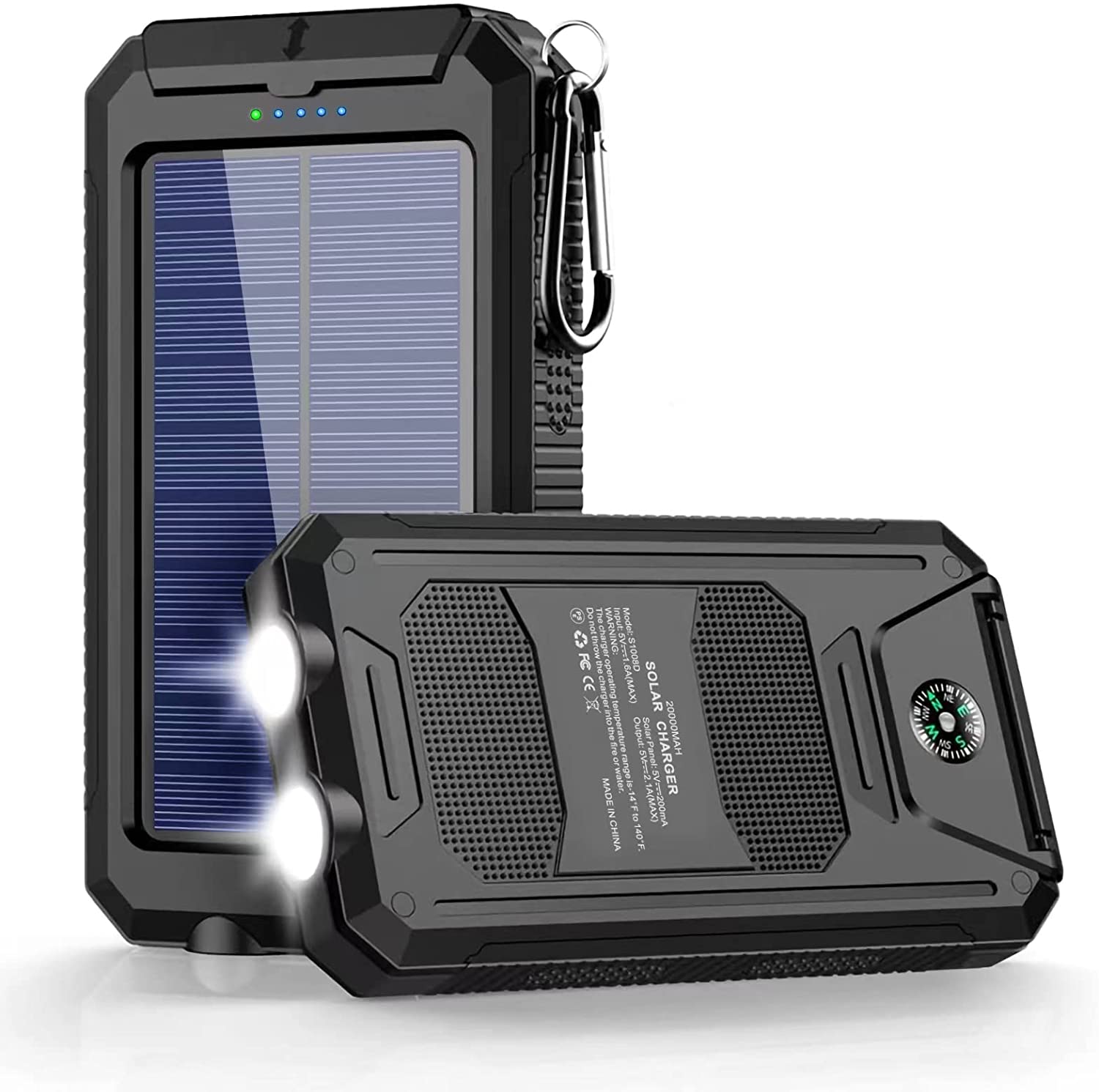 Annero Solar Power Bank, Solar Charger 20000mAh Portable Solar Phone Charger Waterproof External Battery Pack with Dual USB Ports & LED Flashlights
