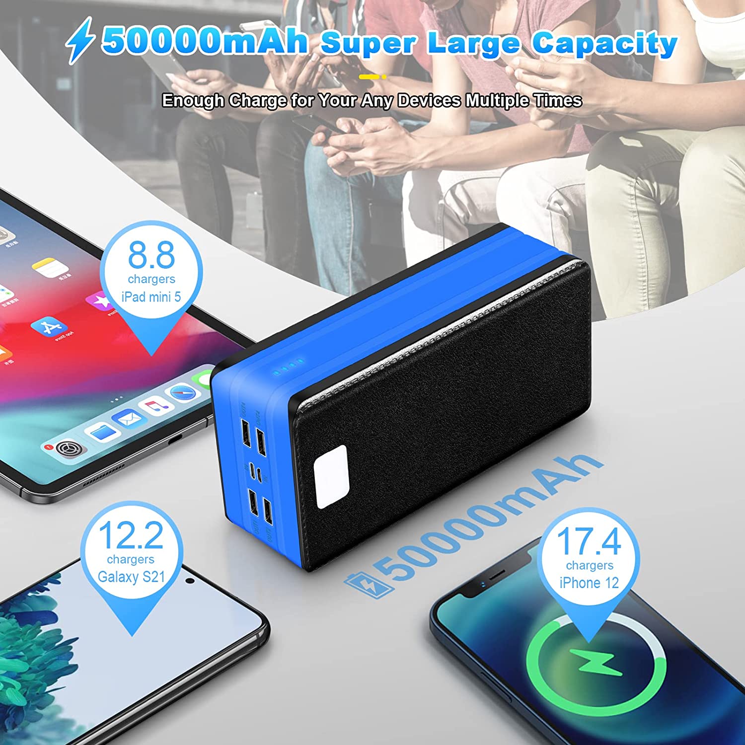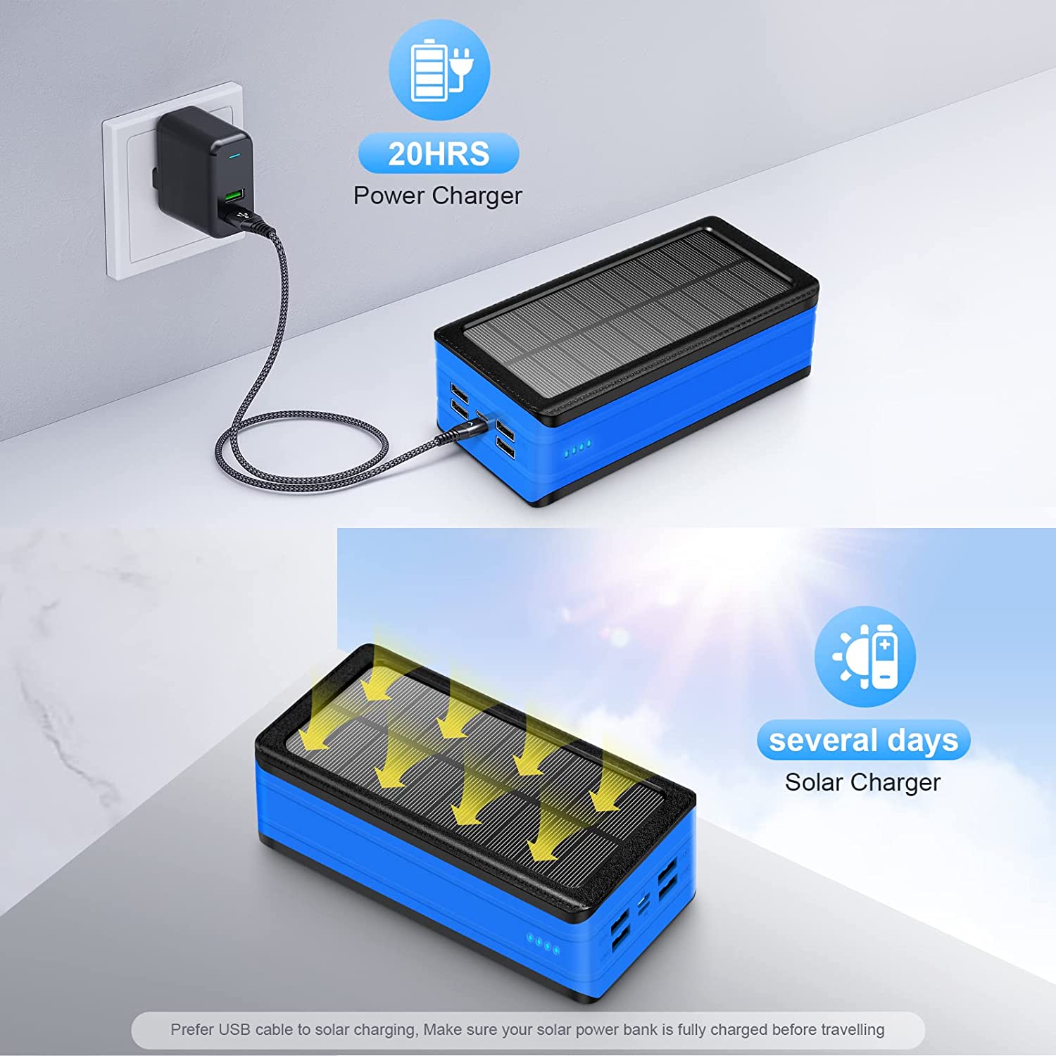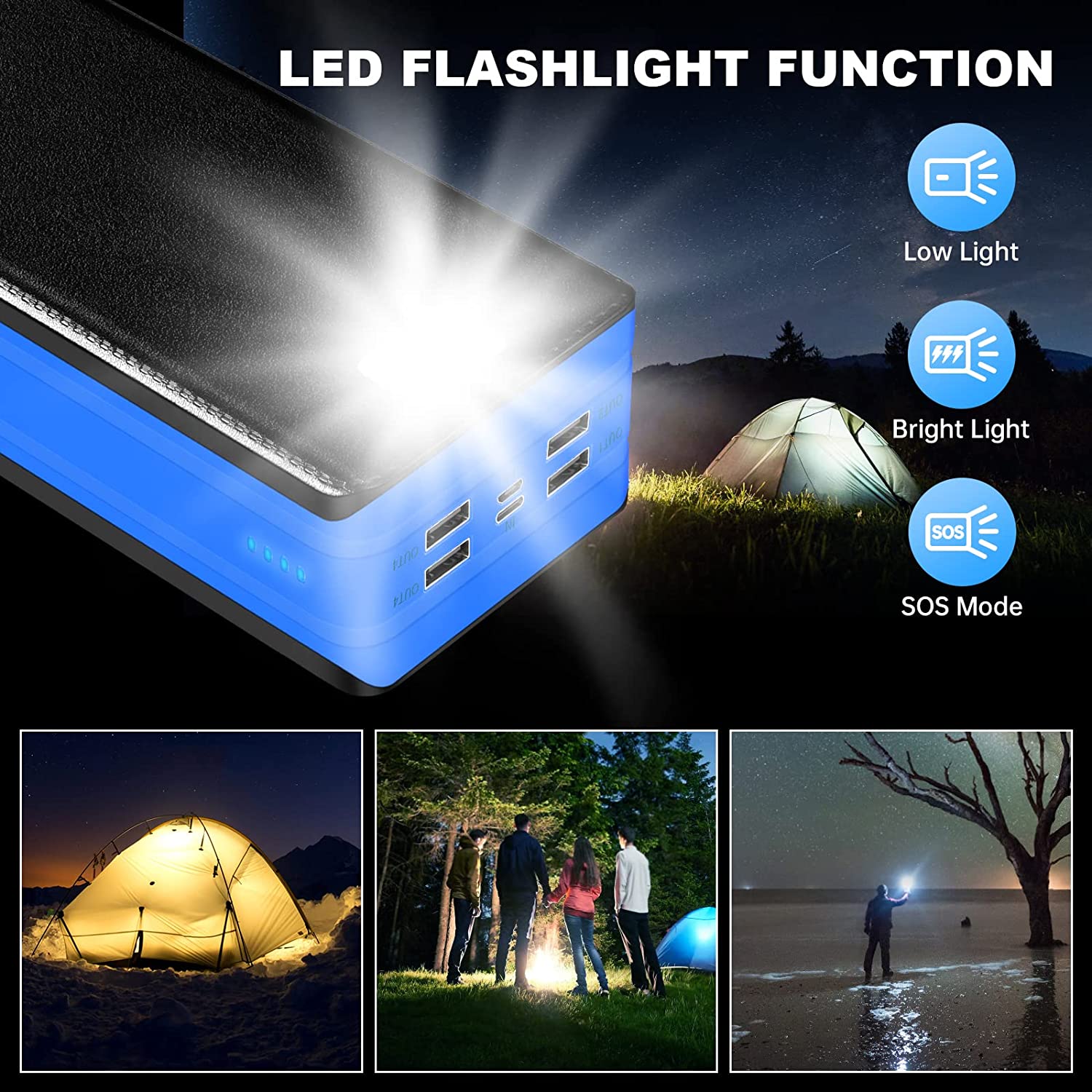 Portable Charger 50000mAh Solar Power Bank Camping Waterproof External Backup Charge with 4 Outputs & Dual Inputs 9 LED Light Flashlight Backup Battery