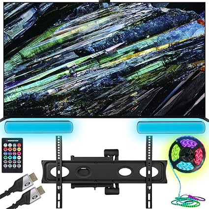 Sony XR55A95L BRAVIA XR A95L 55 inch QD-OLED 4K HDR Smart TV with Google TV (2023) Bundle with Home Theater Package - Full Motion Mount, Monster HDMI Cables, & Sound Reactive RGB Light Strip