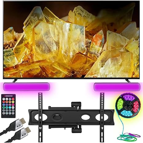Sony XR65X90L Bravia XR 65 inch X90L 4K HDR Full Array LED Smart TV (Renewed) Bundle with Monster TV Full Motion Wall Mount for 32-70 inch with 6 Piece Sound Reactive Lighting Kit