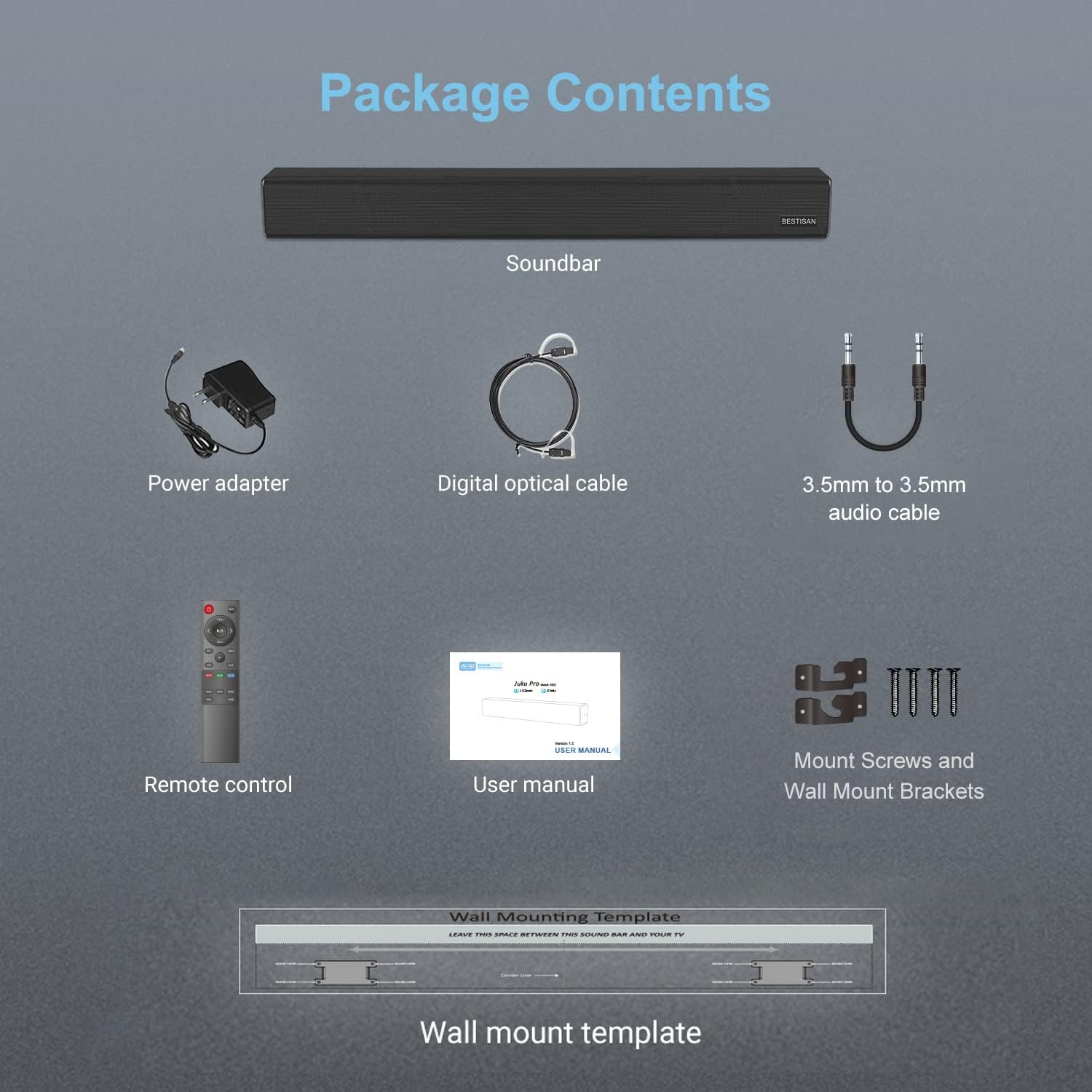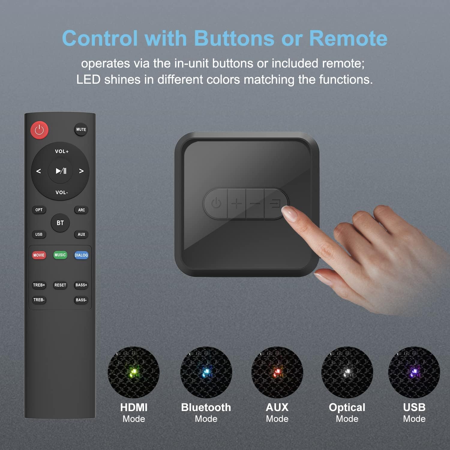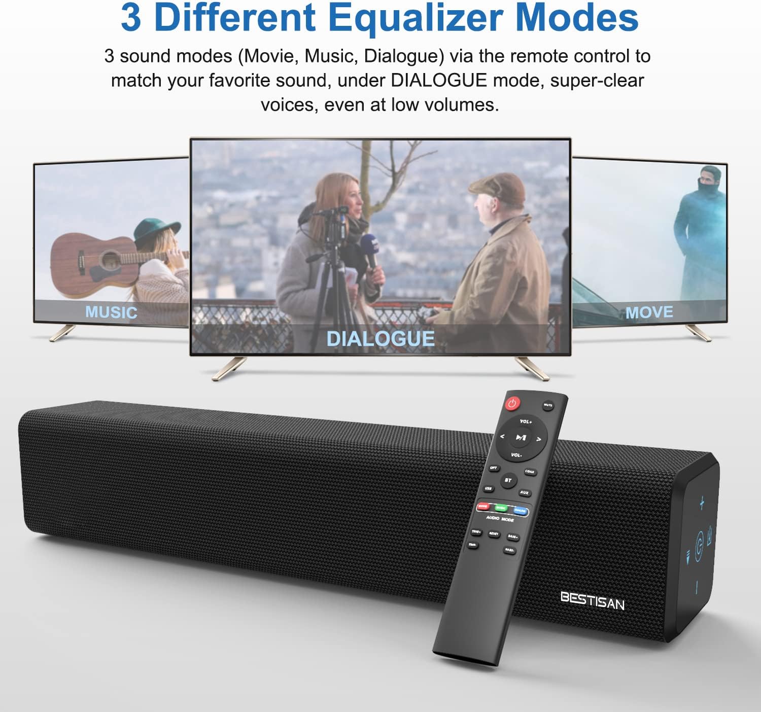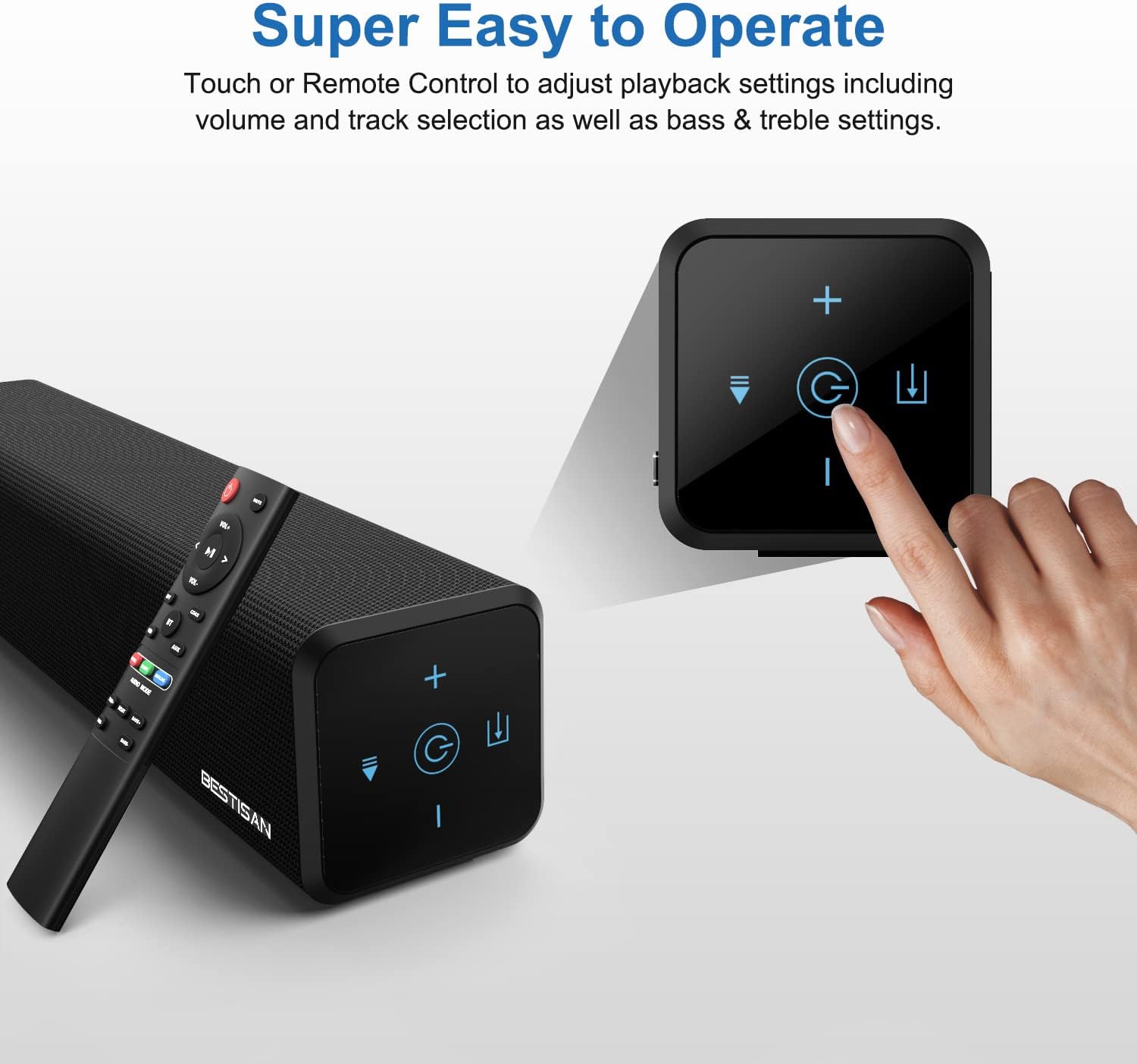 Soundbar, BESTISAN Sound Bar with Bluetooth 5.0 and Wired Connections, Home Theater Audio Sound Bars for TV (20 Inch, 50 Watt, 3 Inch Drivers, Bass Adjustable, Wall Mountable, Deep Bass, AUX-Out Port)