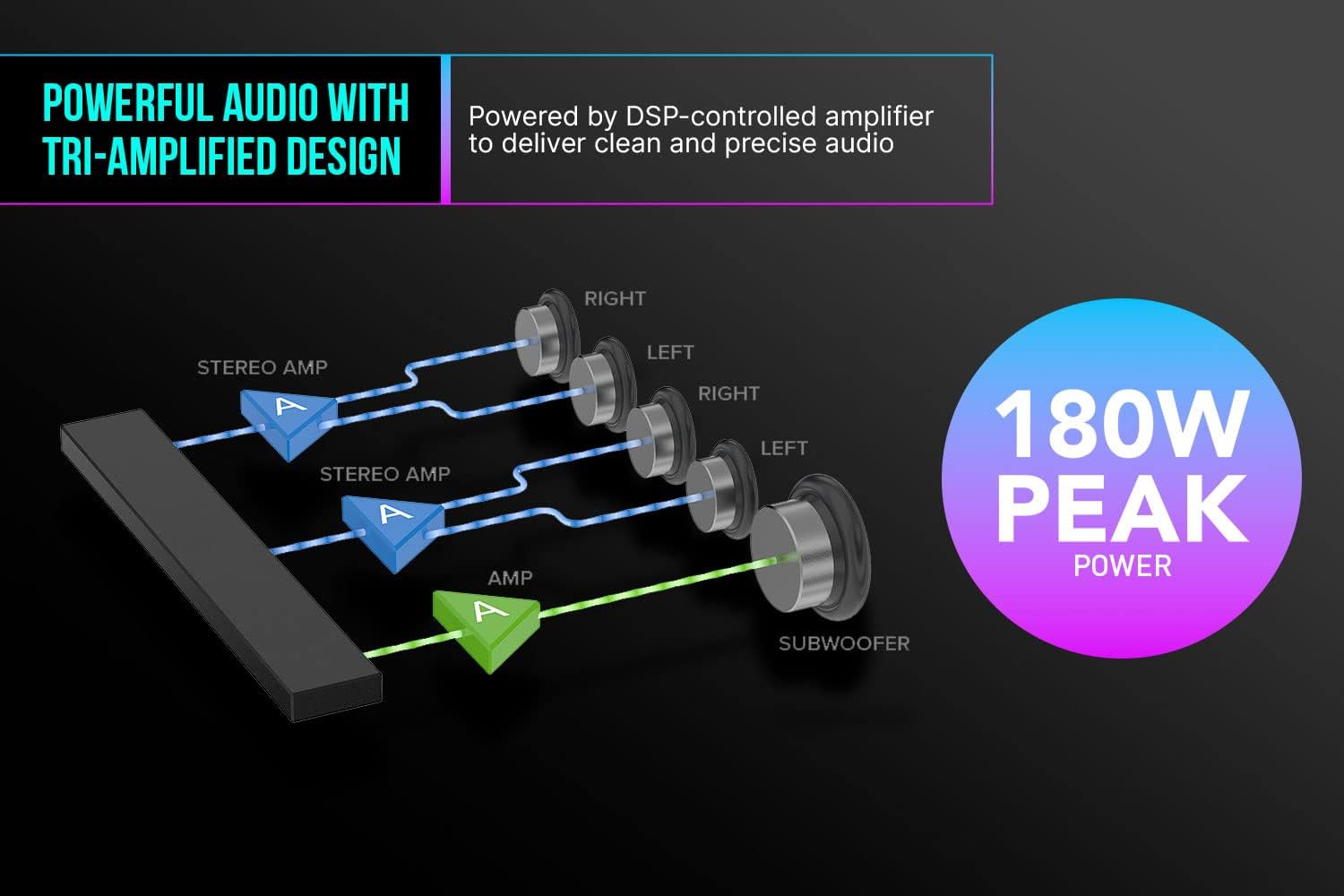 • VERSATILE CONNECTIVITY AND BUILT-IN MICROPHONE – Enjoy seamless connectivity options, including USB, HDMI ARC, optical port, as well as wireless Bluetooth 5.0. It works with various platforms, from gaming consoles as well as PC, Mac and mobile devices too. It also incorporates a built-in beamforming microphone for you to jump on calls directly from the soundbar