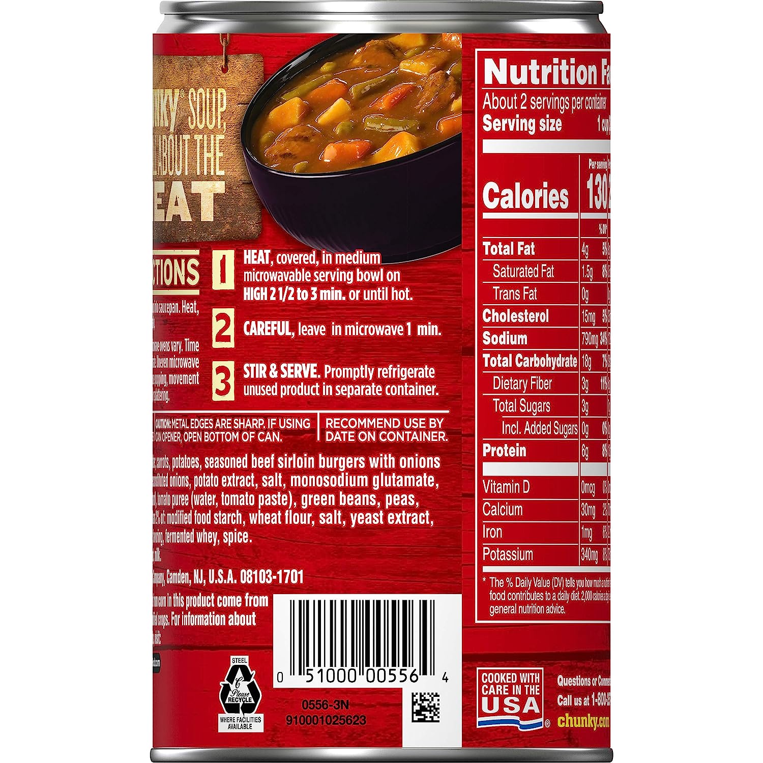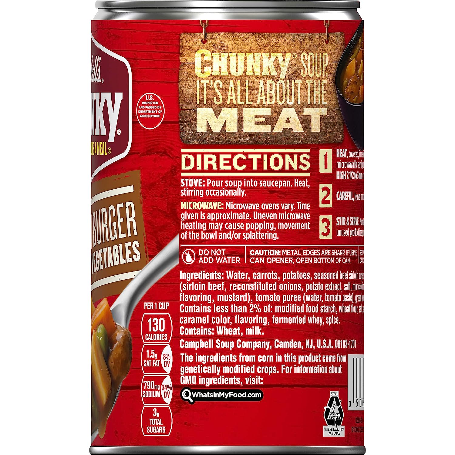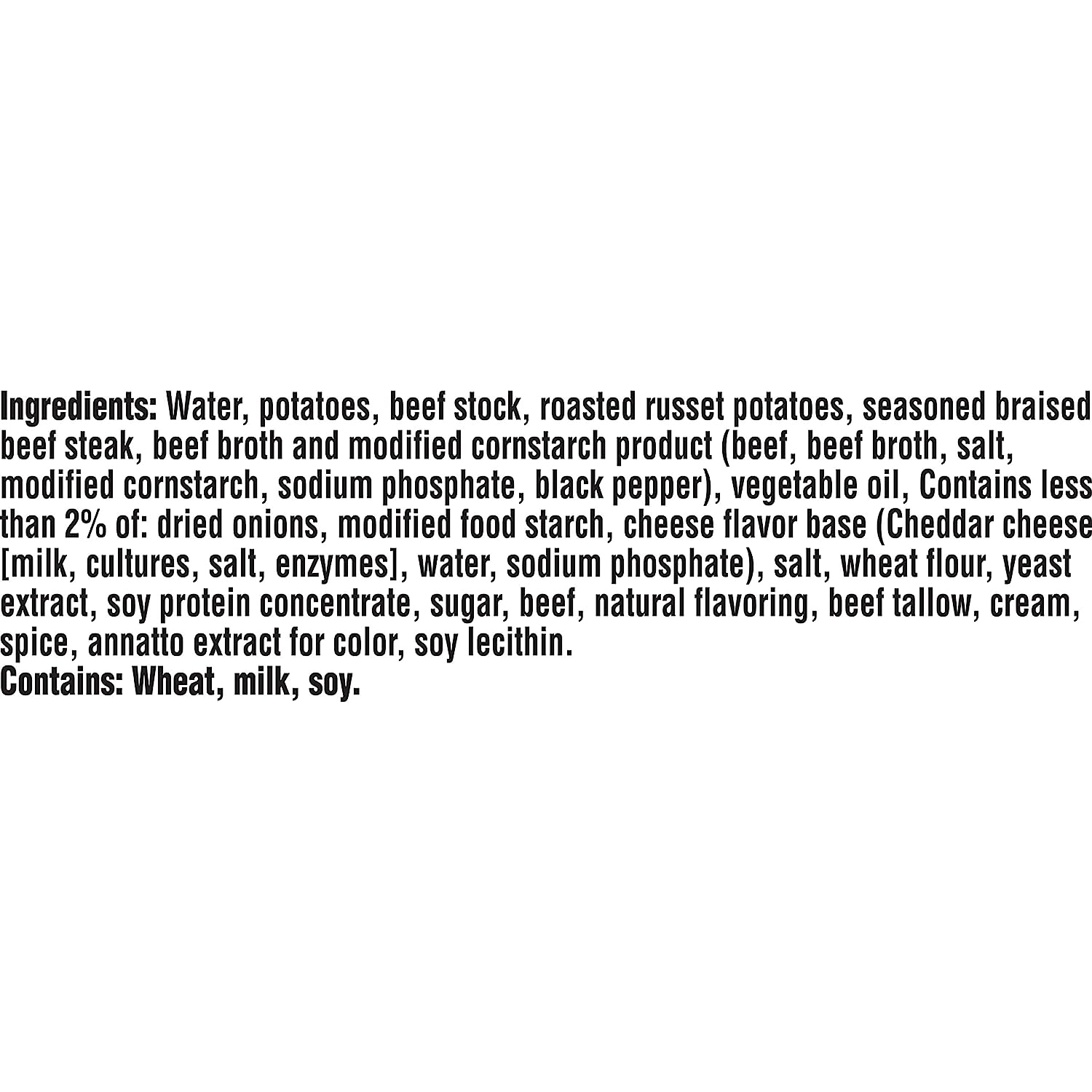 Campbell’s Chunky Baked Potato with Baked Potato with Steak and Cheese Soup isn’t just tasty—it's made to work as hard as you do. With never-ending big flavors and bold ingredients, this comfort food classic is capable of fueling even the heartiest appetite. This ready-to-eat soup is crafted with chunks of potatoes, seasoned steak pieces and cheddar cheese. Each can has 15 grams of protein. It Fills You Up Right. Just pop this potato soup in a microwave-safe bowl, heat and enjoy. Or, warm it over the campfire on your outdoor adventures. Whether you’re looking for quick and easy to microwave soups for home or something to take on the go, Campbell’s has you covered. Take on the great outdoors with Campbell’s Chunky Baked Potato with Steak and Cheese Soup—Soup That Eats Like a Meal.