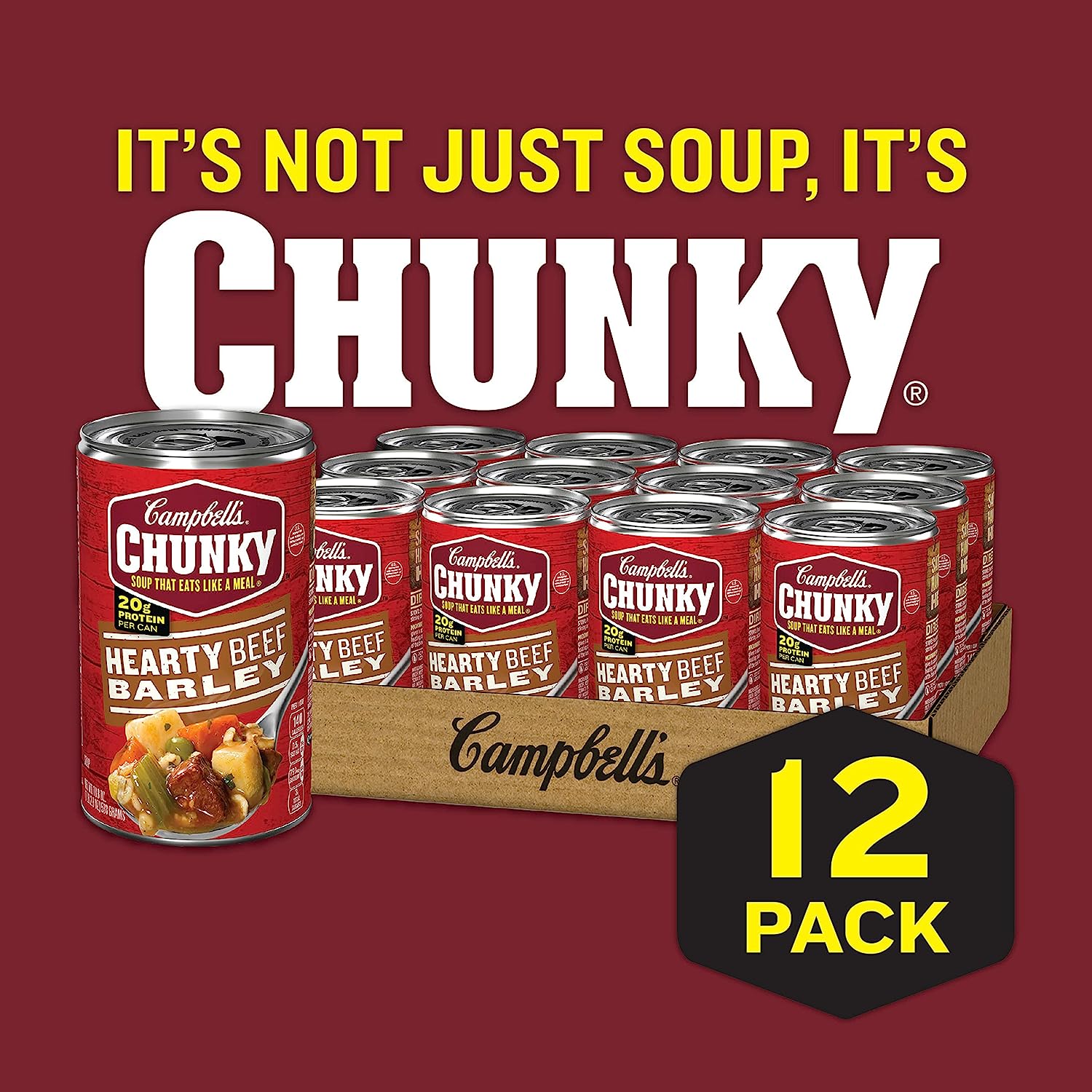 Campbell's Chunky Soup, Hearty Beef and Barley Soup, 18.8 Oz Can (Case of 12)