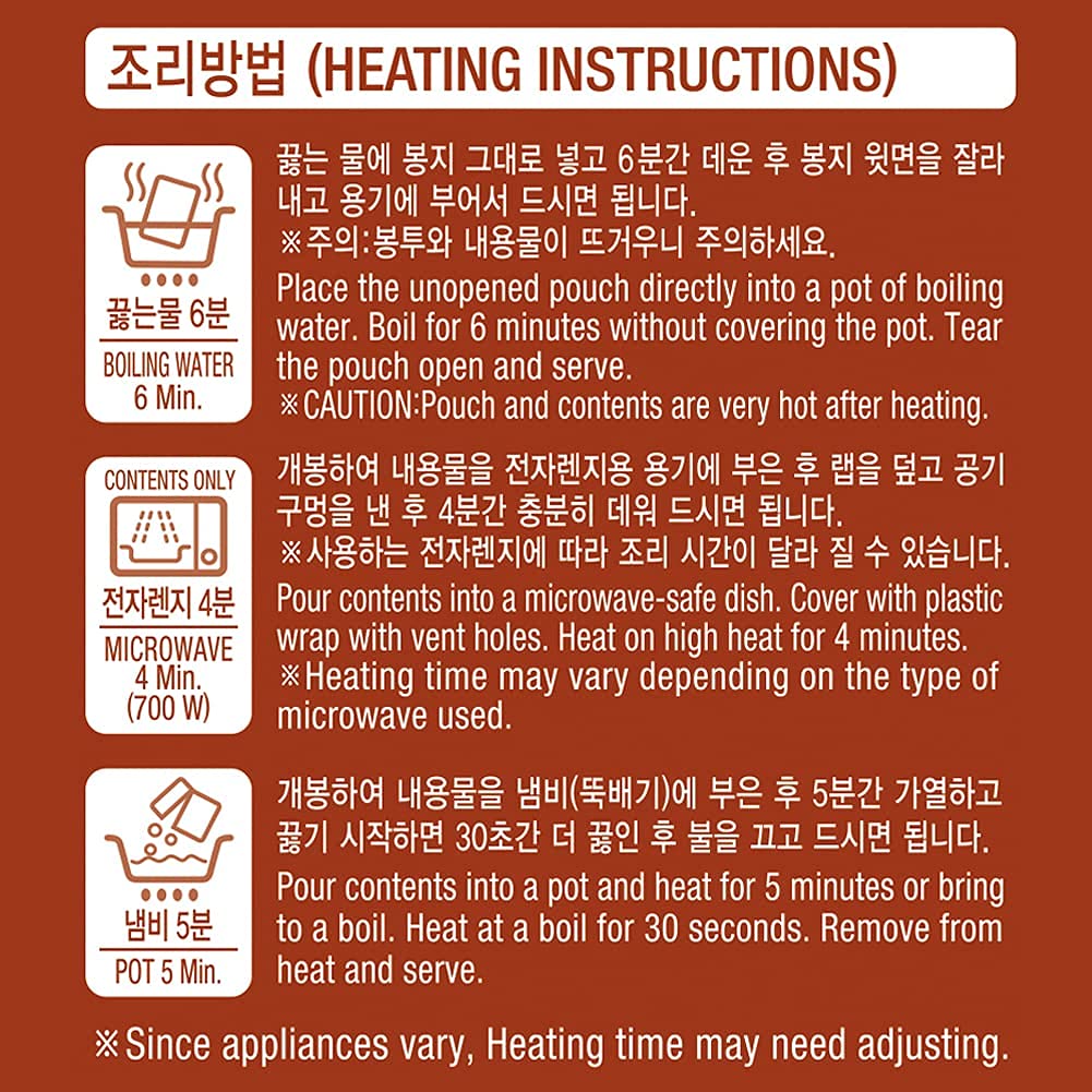 • 🍲 You can enjoy more if you add the following ingredients: Dumpling, Cheddar Cheese, Instant Noodle, Garae-Tteok(Bar Rice Cake), Tofu