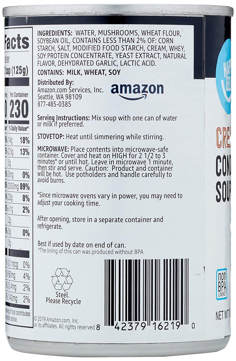 Amazon Brand - Happy Belly Cream of Mushroom Soup 10.5 Ounce