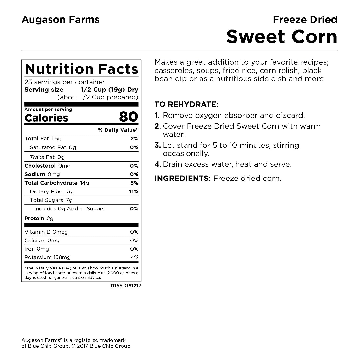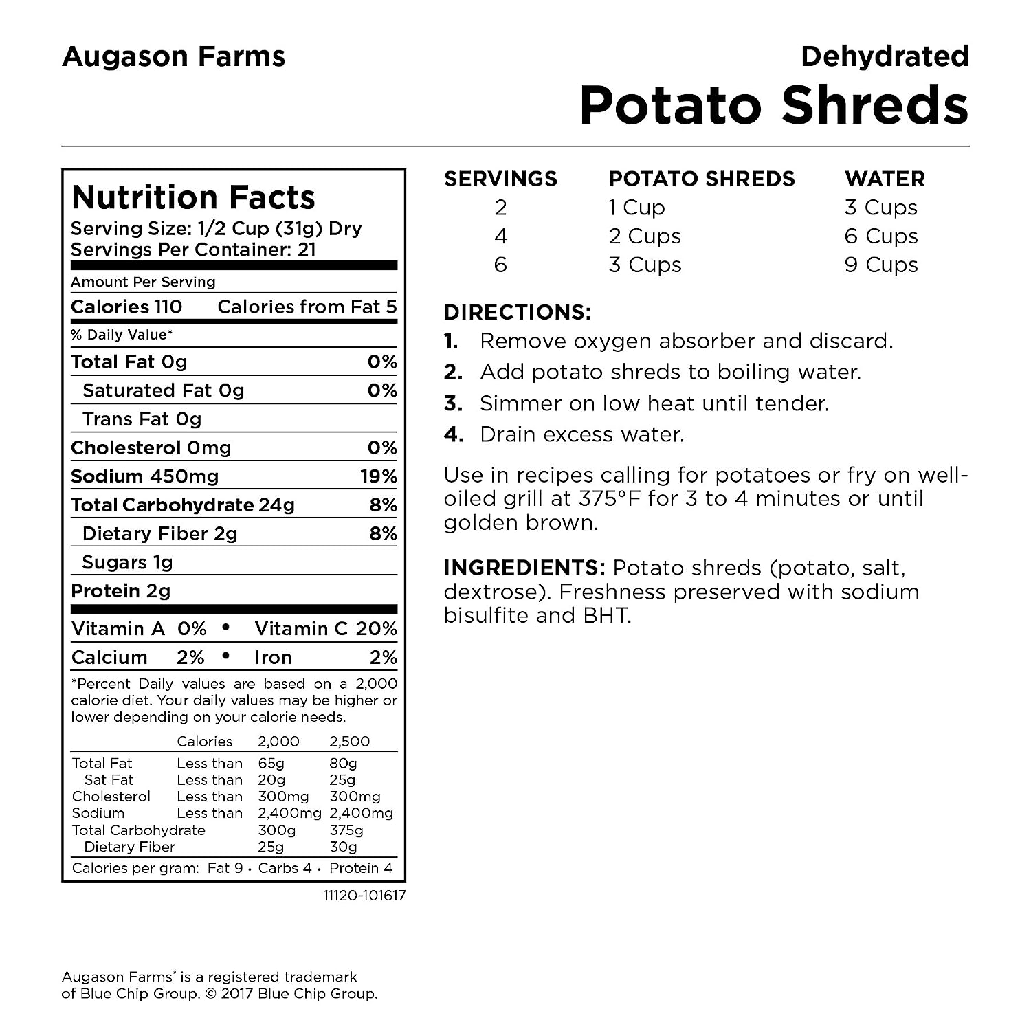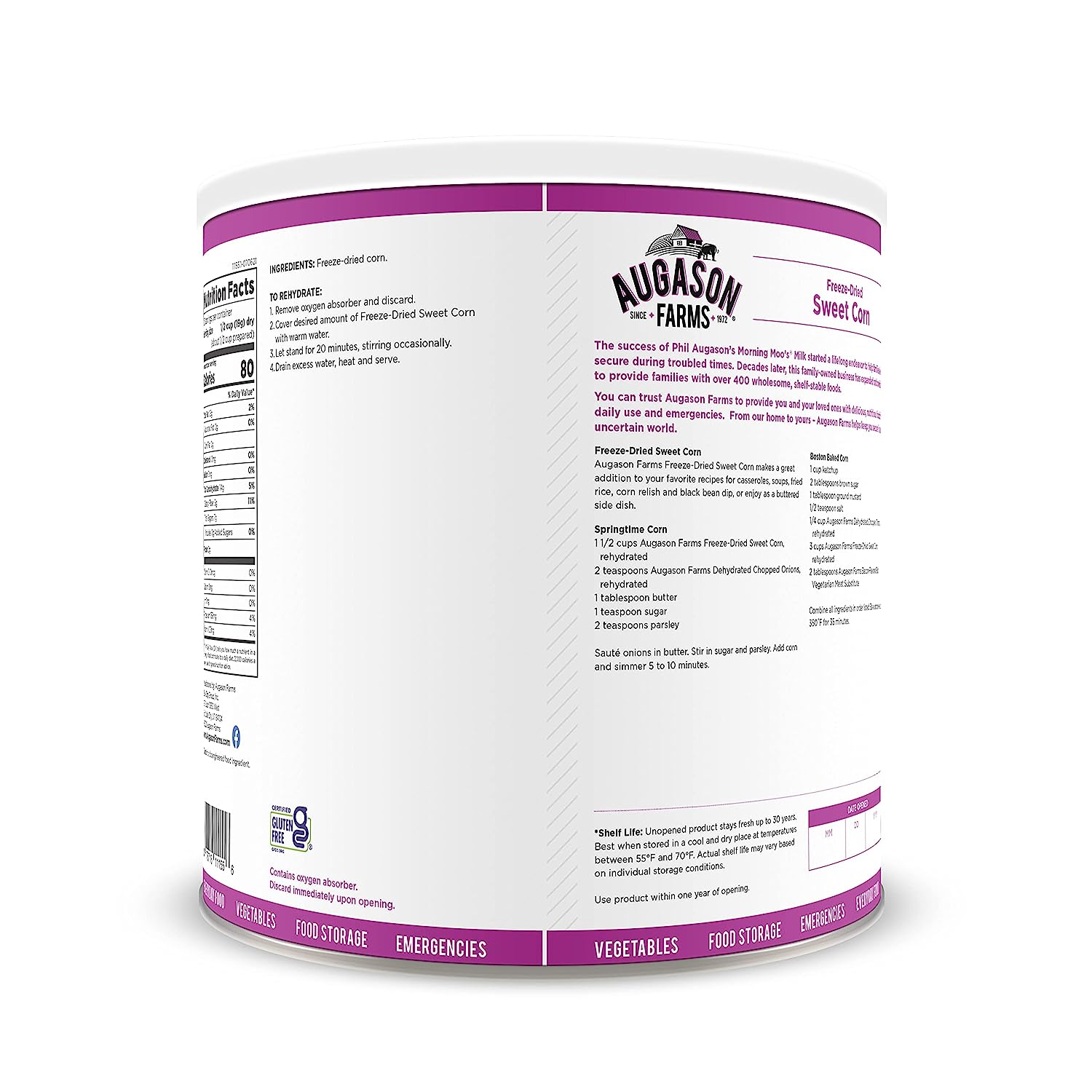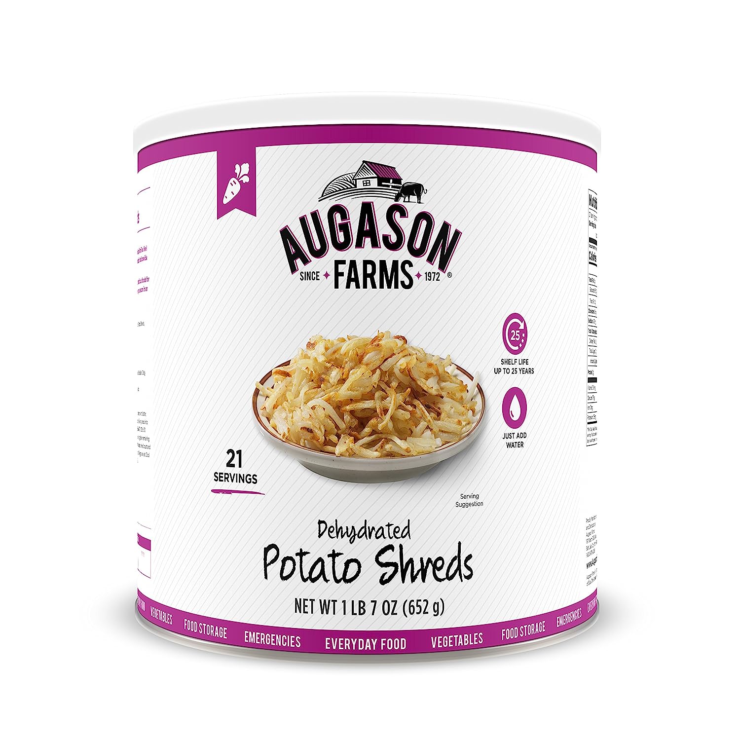 The Augason Farms Vegetable Stew Blend is a nutritious and hearty combination of potato dices, cabbage flakes, chopped onions, red and green peppers, carrot dices and celery slices. This perfect blend makes it easy to add to broths, soups, casseroles or stew.No matter the case, this can is an absolute essential in an emergency: it’s easy to transport and includes all your food storage needs. Make the wise decision and let Augason Farms give you a peace of mind that’s as indispensable as it is delicious. Family owned and operated since 1972, Augason Farms believes that great taste is a tradition worth preserving. They'll provide you with delicious peace of mind with their food essentials.Augason Farms recognizes that today's consumers are more concerned than ever before about what kind of foods they eat, and want to provide their families with food that is safe and the best quality. Whether enjoying Augason Farm's products for everyday meals, as an emergency food supply, or years down the road, you can be confident that Augason Farms long-term food storage products are guaranteed for quality and taste every time.Please discard oxygen absorber after opening.Best when stored in a cool dry place at temperatures between 55° and 70° F (ideal humidity 15%).