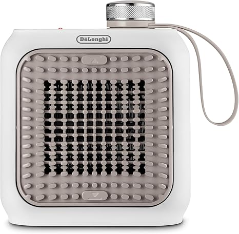 De'Longhi Capsule Solo Personal Ceramic Heater, Sand Beige - Mini Space Heater & Fan - Easy-to-Use Controls, Cool Touch Handle & Tiltable Grid - Quiet & Lightweight