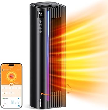 GoveeLife Space Heater Pro for Large Room, Smart Oscillating Ceramic Tower Heater with Thermostat, App & Voice Remote, Auto Modes, 24H Timer, Overheating & Tip-Over Protection 1500W Heater for Indoor