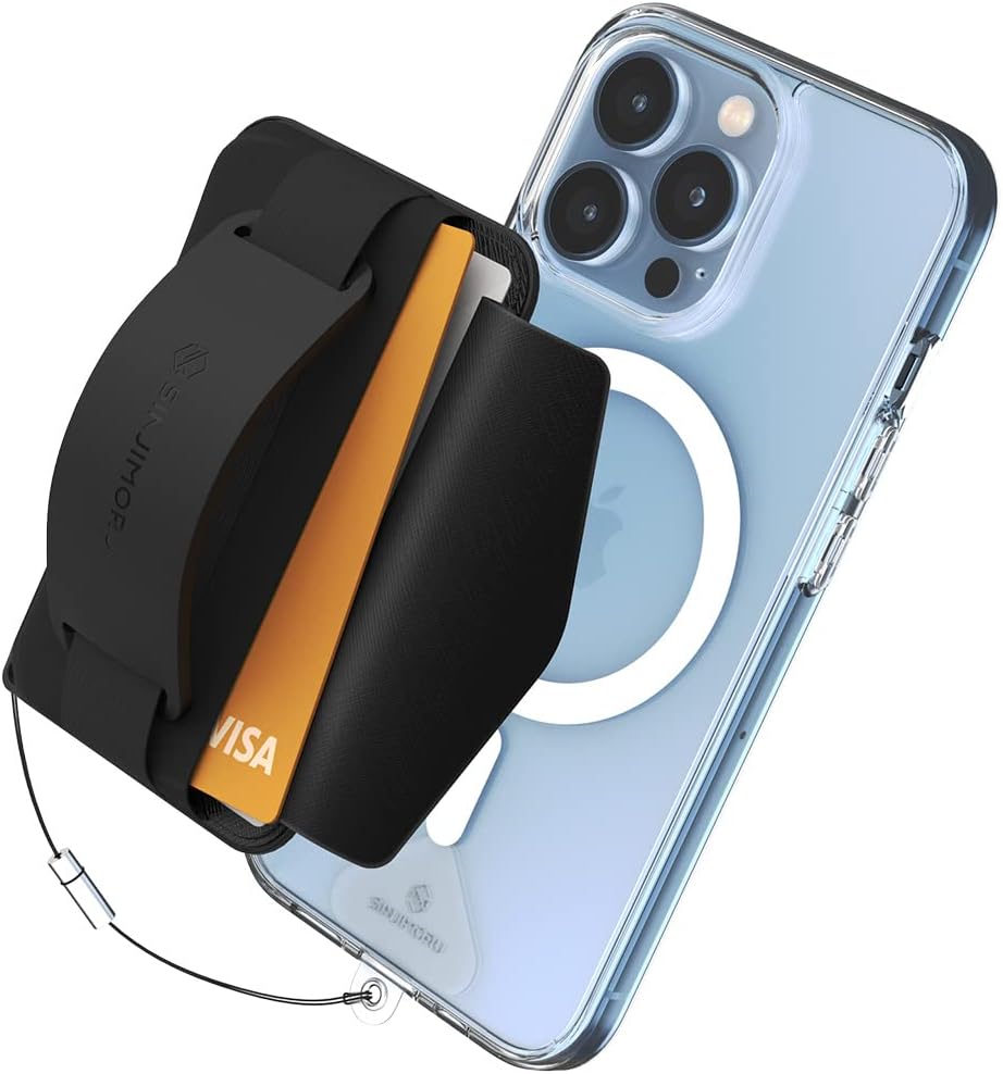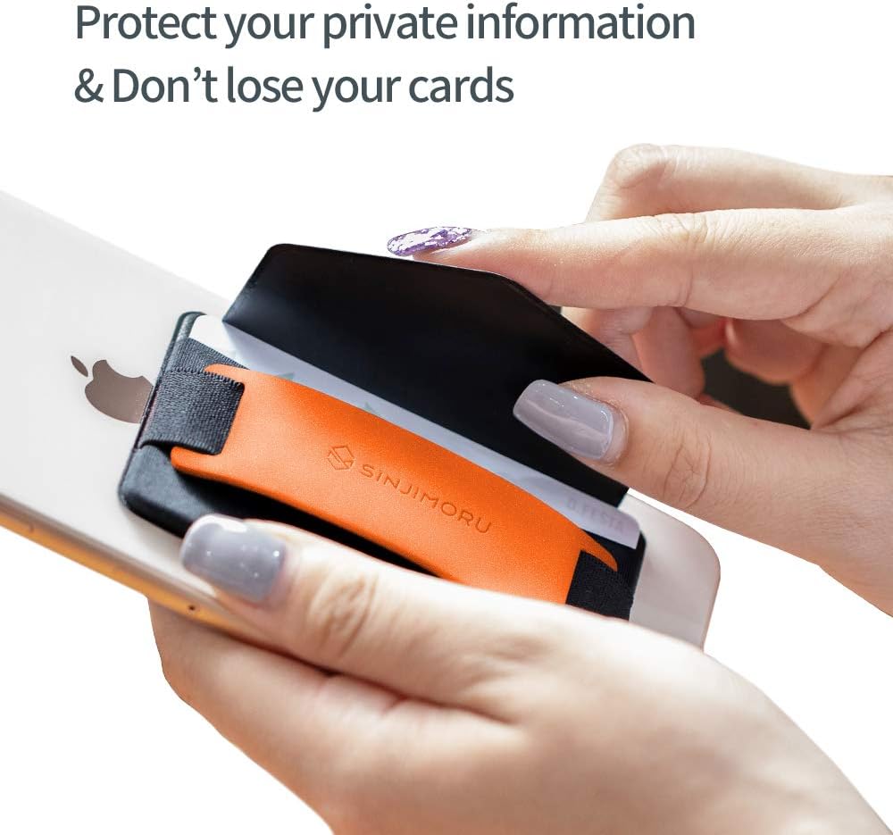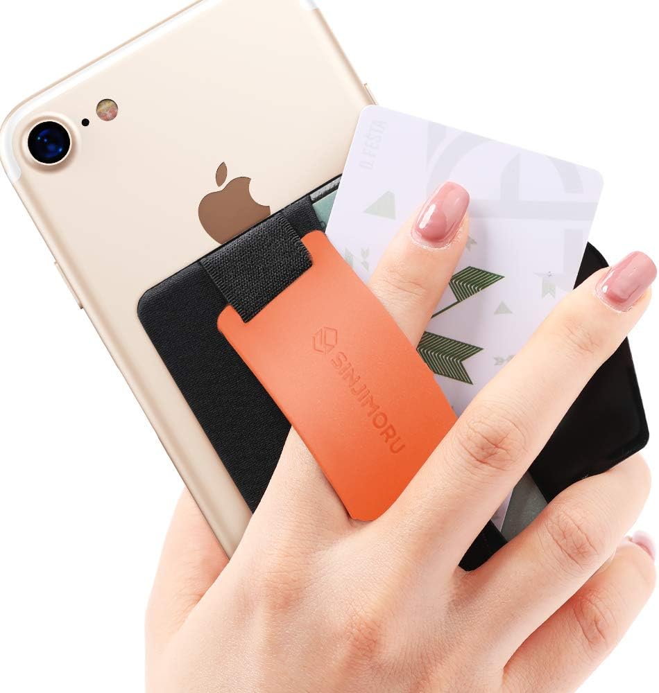 Sinjimoru Phone Grip Card Holder with Phone Stand, Secure Stick on Wallet for iPhone with Pop Out Stand for Table. Sinji Pouch B-Grip Black