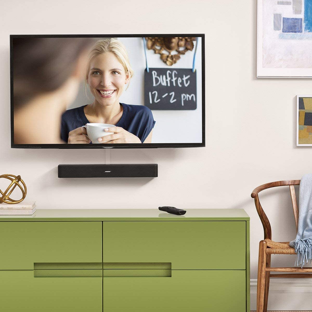 The Bose Solo 5 TV sound system is a one piece sound bar that brings noticeably better sound to all your favorite TV programs. It's engineered to help clearly reproduce everything from dialogue to details. And for even more clarity, its dialogue mode makes every word easier to hear. This soundbar is so versatile you can place it almost anywhere. And with Bluetooth connectivity, you can play your favorite wireless music through the speaker, too. The sleek design of your flat screen TV is beautiful to look at. Unfortunately, there's little room left for speakers. That's why dialogue and quiet passages can be so hard to hear. The Solo 5 TV sound system is an easy solution, with advanced technologies that deliver the clearest audio your TV can't. And dialogue mode makes every word even easier to understand without having to adjust the volume from scene to scene. If distorted sound secure cable connections on the sound bar and TV or other connected sources. Troubleshoot if the sound bar is connected to a TV output labelled variably reduce the TV volume. If wall mounting the sound bar, adjust the audio If you remove the sound bar from the wall, repeat to return the sound bar to default audio settings. Unplug the power cord for at least one minute and reconnect.