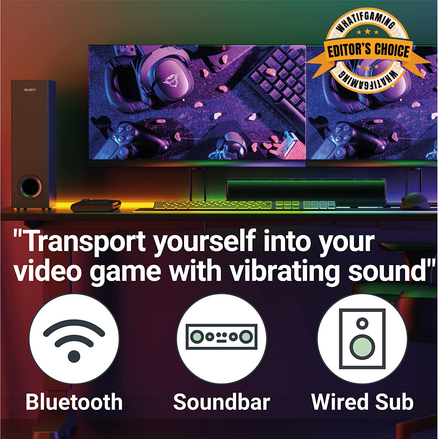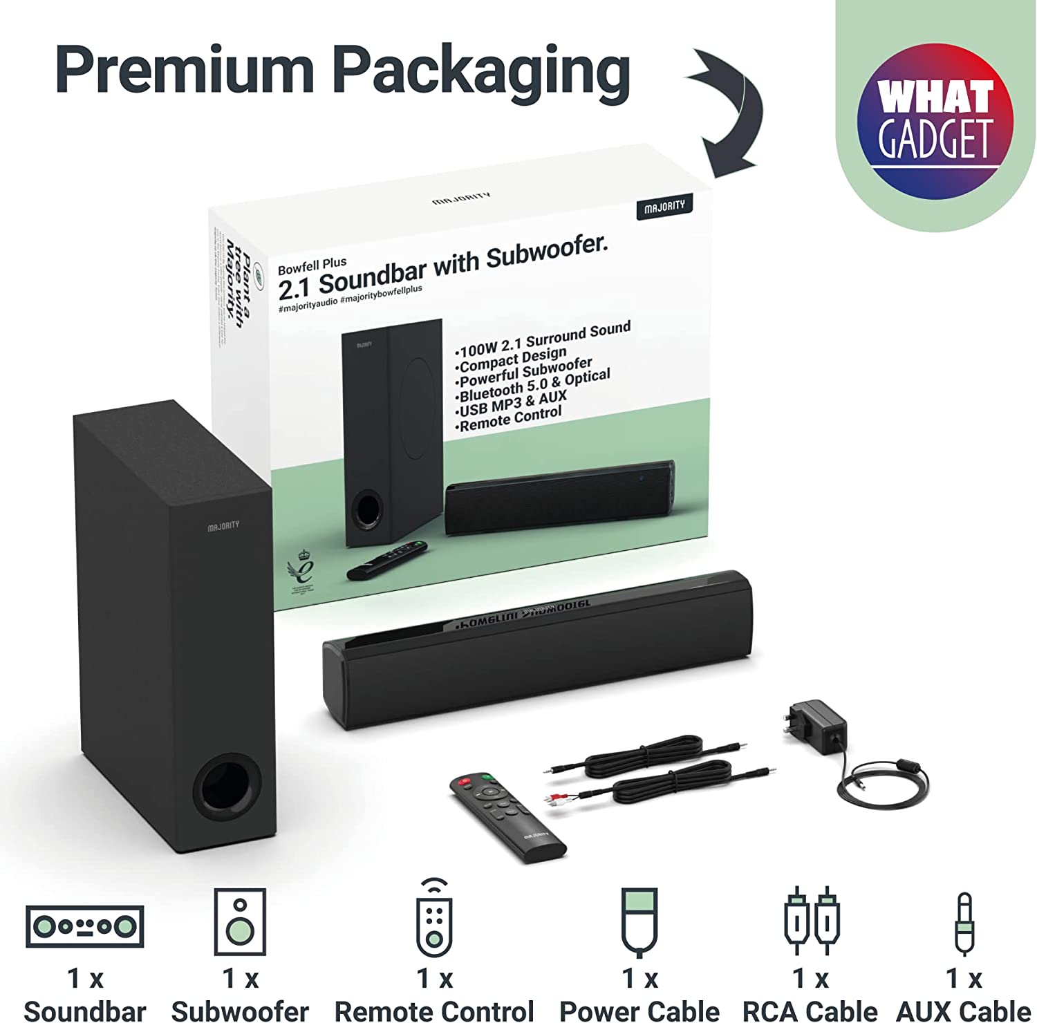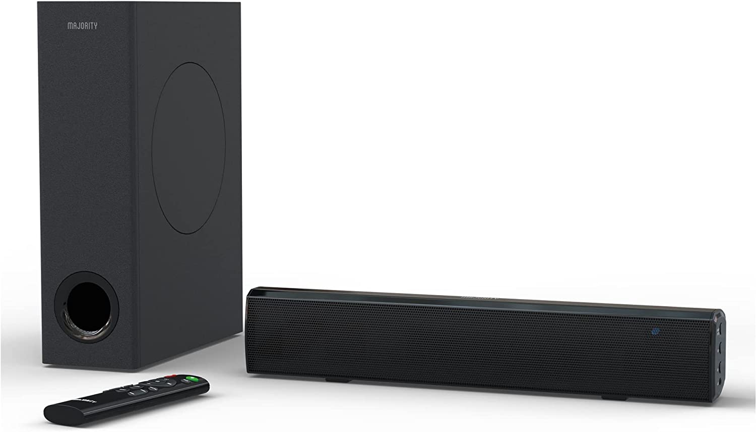 Majority Bowfell Small Sound Bar for TV with Bluetooth, RCA, USB, Opt, AUX Connection, Mini Sound/Audio System for TV Speakers/Home Theater, Gaming, Projectors, 50 watt, 15 inch