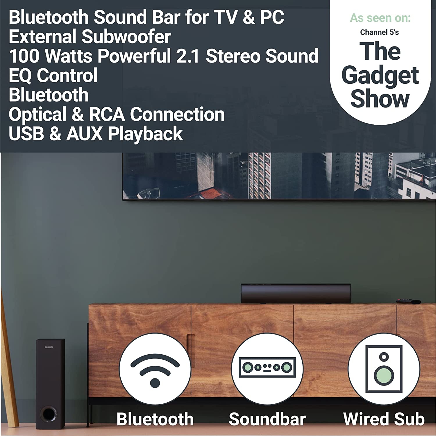 • BLUETOOTH, EQ CONTROL, 5 AUDIO MODES: Our powerful 50 watt soundbar and speaker comes with various audio connections and an EQ feature to customize your audio to how you want it. Music, radio, gaming, movies, live sport - listen to audio how it was meant to be heard.