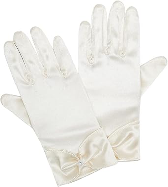 LATTEMARMALATTE Girl's Stretch Satin Dress Gloves Flower Kids Gloves Dressy Wrist Length Gloves for Little Girls for Wedding
