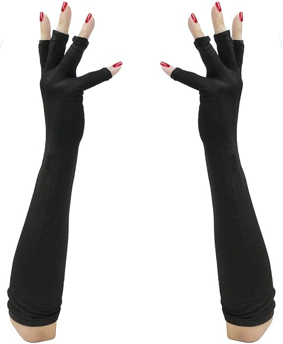 Luwint Elegant Long Fingerless Gloves - UV Protection Nails Gloves for Gel Manicures (Black)