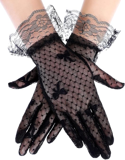 SATINIOR 8 to 15 Years Old Girls Lace Gloves Tea Party Gloves Princess Dress Gloves Floral Bow Elegant Wedding Gloves