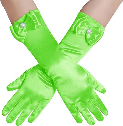 Yolyoo Girls Princess Gloves, Girl White Long Satin Princess Dress Up Diamonds Bows Gloves for Birthday, Wedding, Costume Party