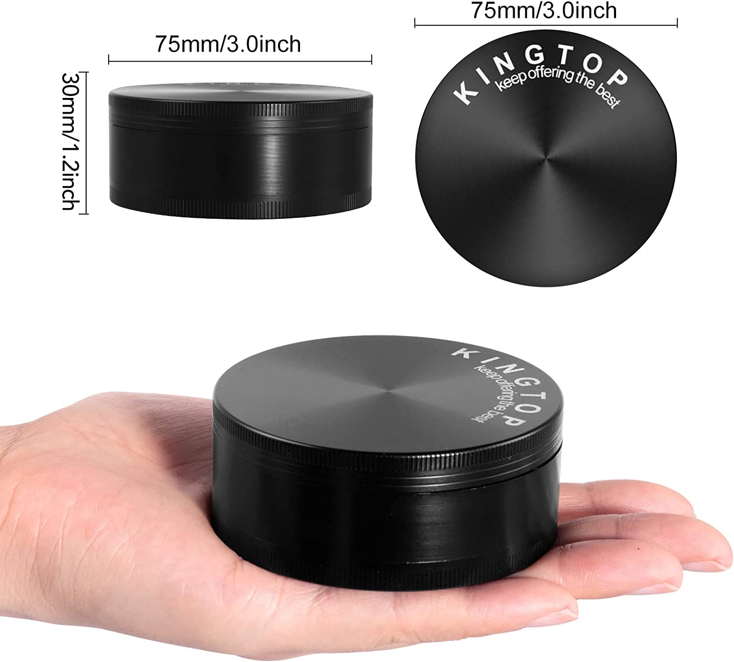 KINGTOP Spice Grinder Large 3.0 Inch Black