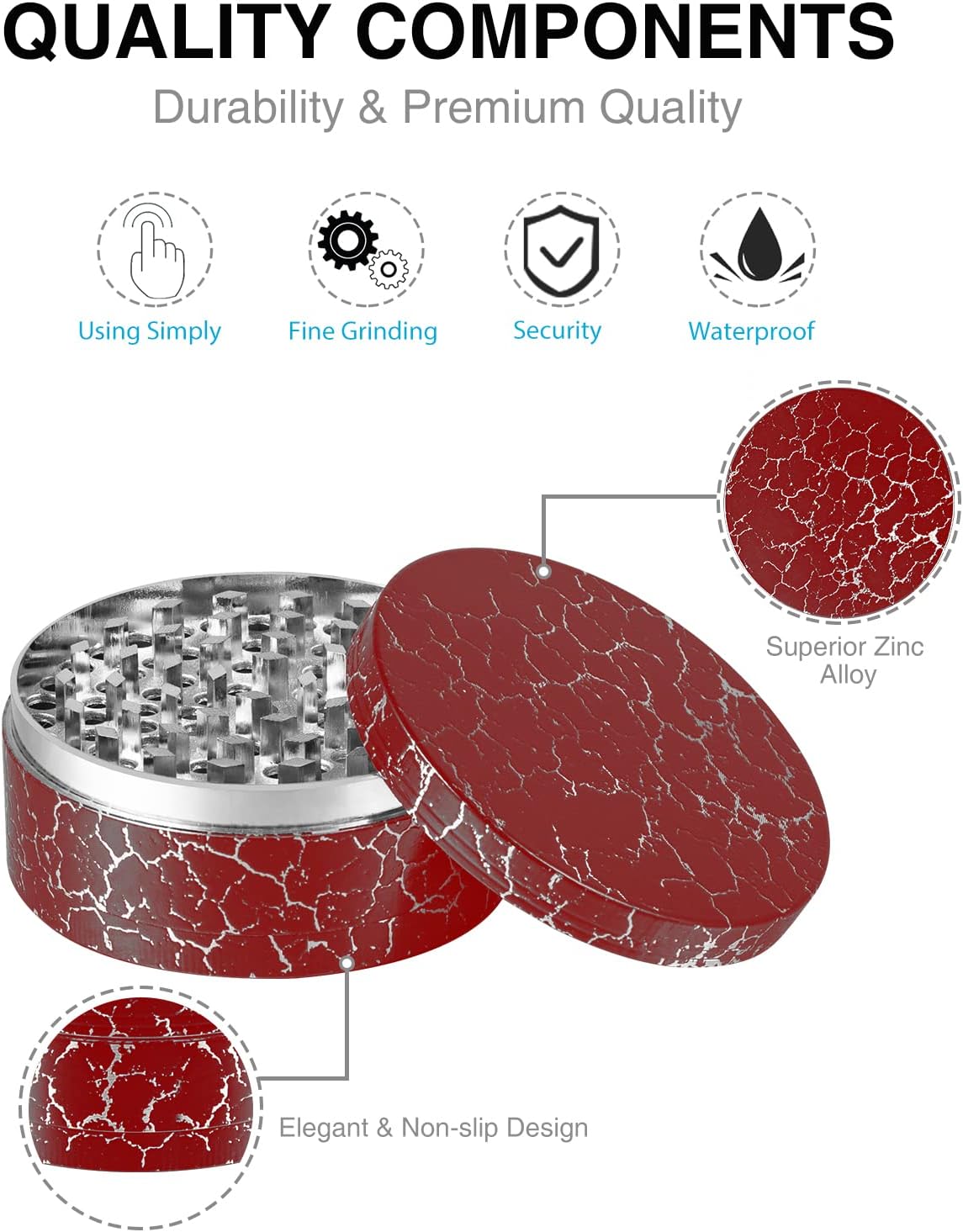 • Large Chamber: Large 3.0 Inch Grinder, you'll be able to grind up more at once.