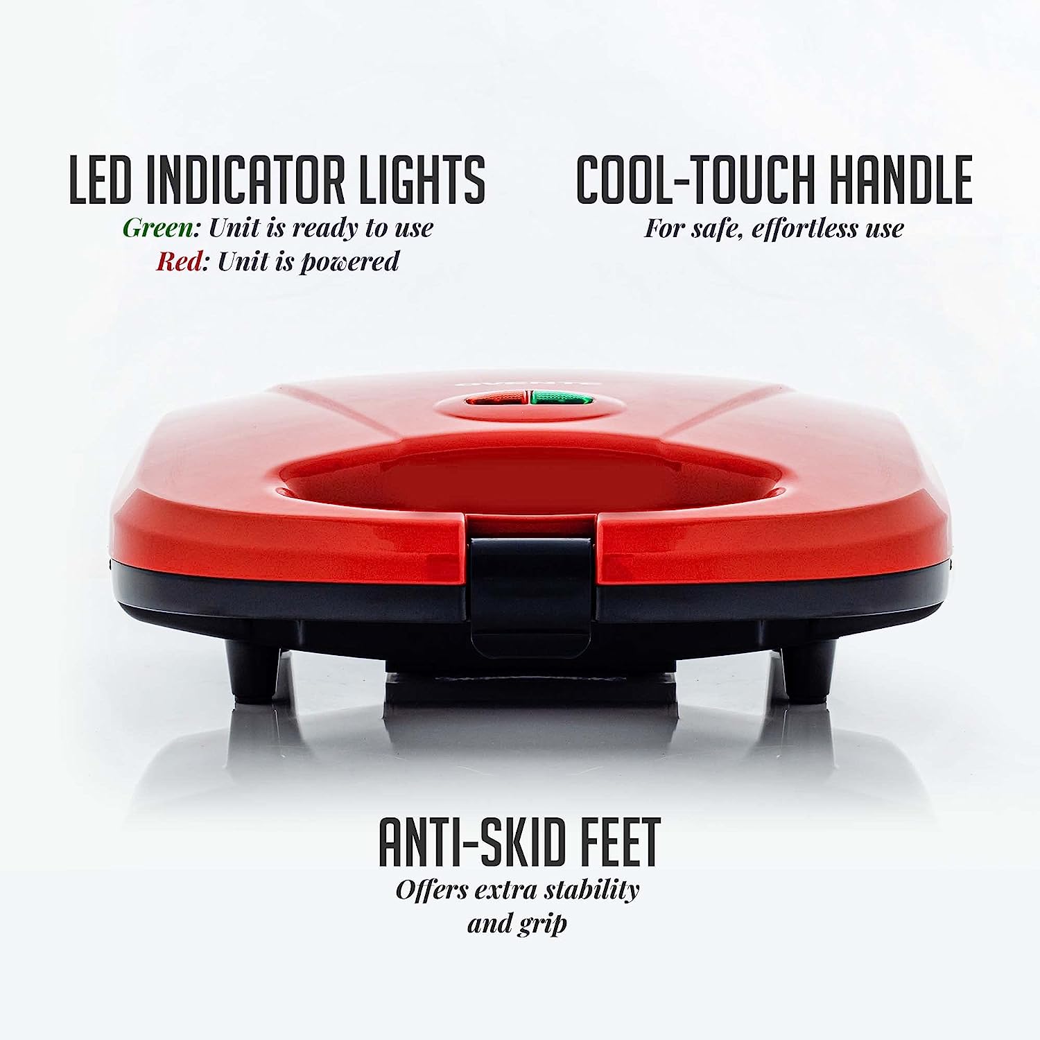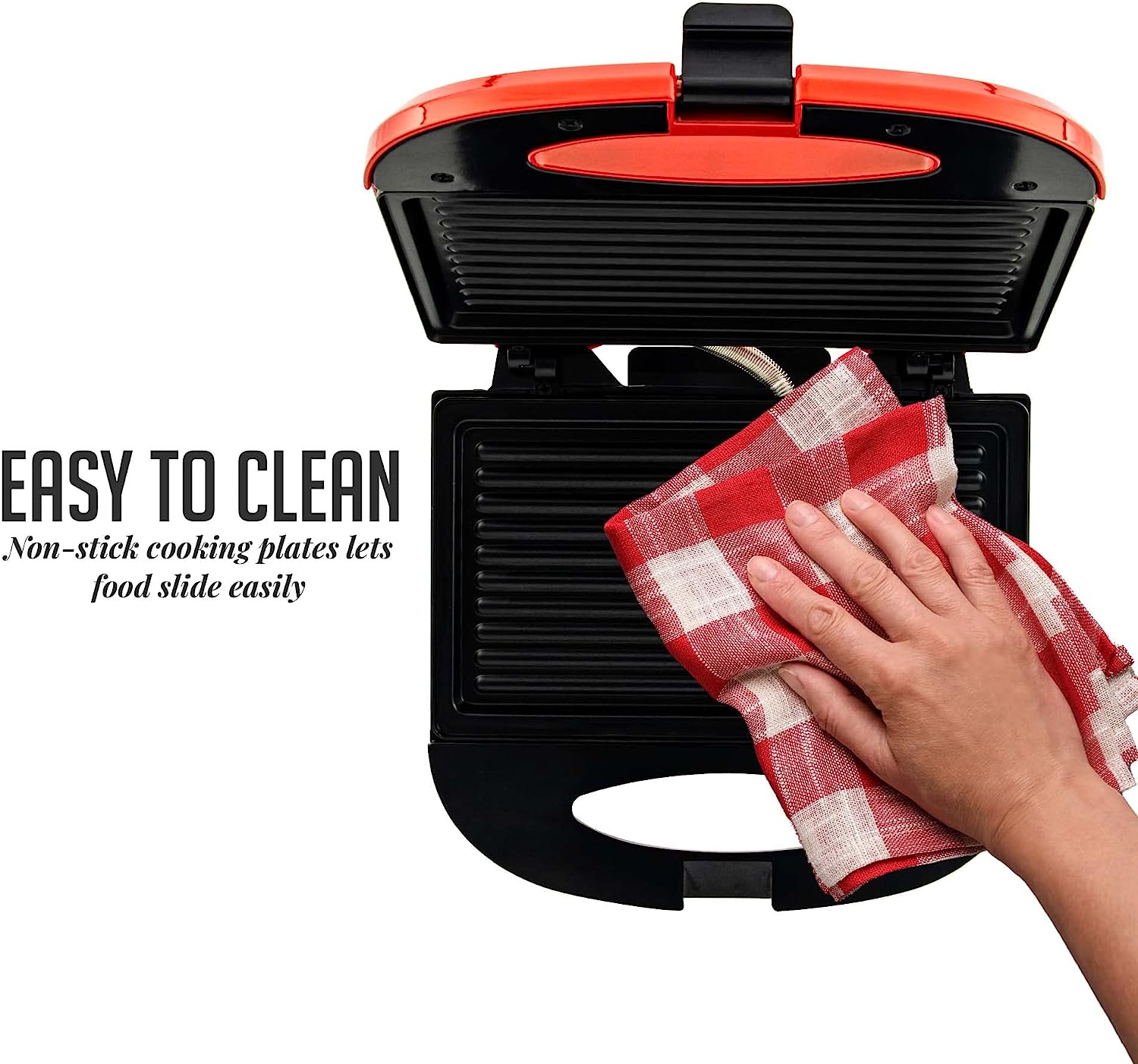 Satiate your grumbling tummy and sink your teeth deep into a mouthwatering treat real quick. In just a few minutes, you can make sandwiches at home any time you want with the OVENTE Electric Sandwich Maker. Powered by a 750 wattage (120 Volt) that heats up quick and fast. The body is made of stainless steel that won’t easily bend or warp even under extreme heat and it effectively resists rust and corrosion too, even after continuous use. Serve your family favorites like grilled cheese sandwiches and pizza pockets. Simply assemble your ingredients and preheat the sandwich maker, coat the plates with a thin layer of butter and place the bread. When it’s done, you’ll have a golden brown sandwich with sealed edges and warmed filling. After using the appliance, just wipe the nonstick cooking surface with a sponge or cloth dampened in warm, soapy water to remove the grease and food residues on the plates.